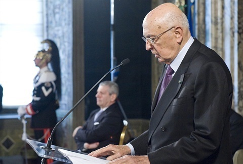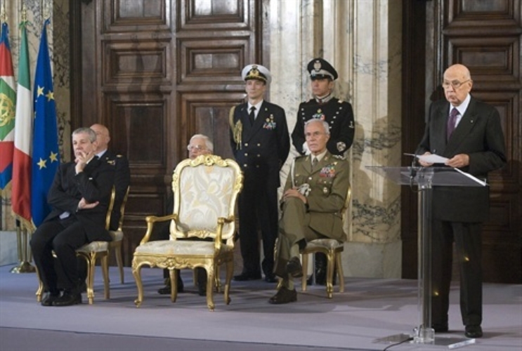 Il Presidente Giorgio Napolitano rivolge il suo indirizzo di saluto in occasione della cerimonia di consegna delle insegne dell'Ordine Militare d'Italia conferite nell'anno 2012