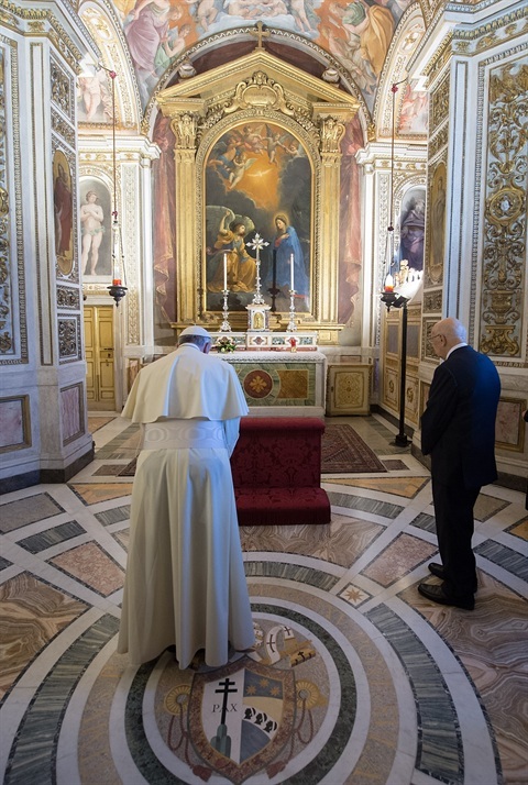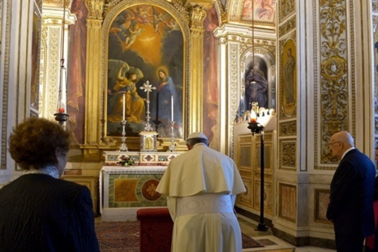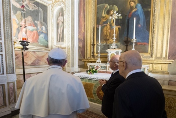 Il Presidente Giorgio Napolitano e Sua Santità Francesco nella Cappella dell'Annunziata del Palazzo del Quirinale