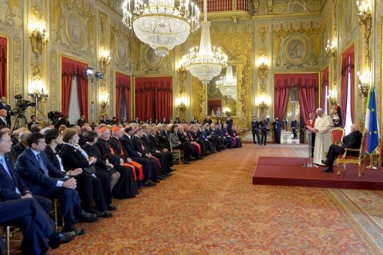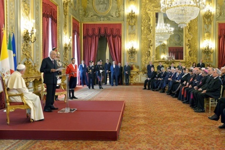 Il Presidente Giorgio Napolitano rivolge il suo indirizzo di saluto in occasione della visita ufficiale di Sua Santità Papa Francesco