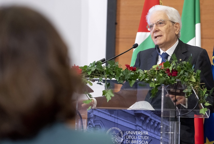 Il Presidente della Repubblica Sergio Mattarella alla cerimonia di inaugurazione dell'anno accademico 2020/2021 dell'Università degli Studi di Brescia