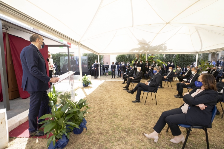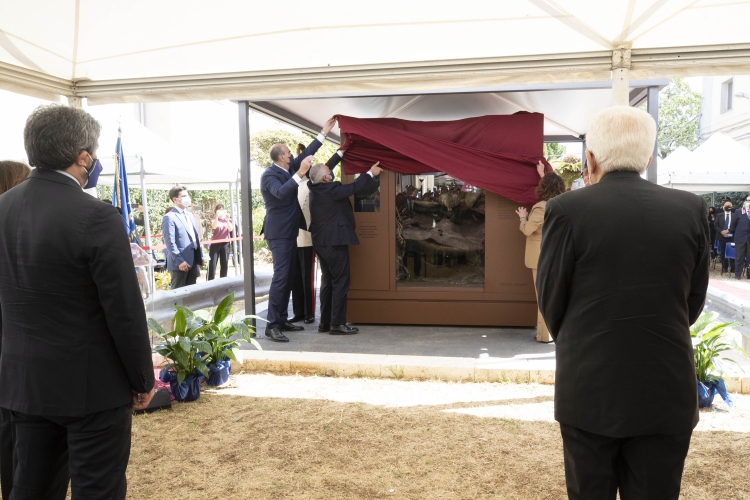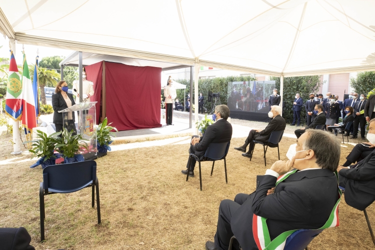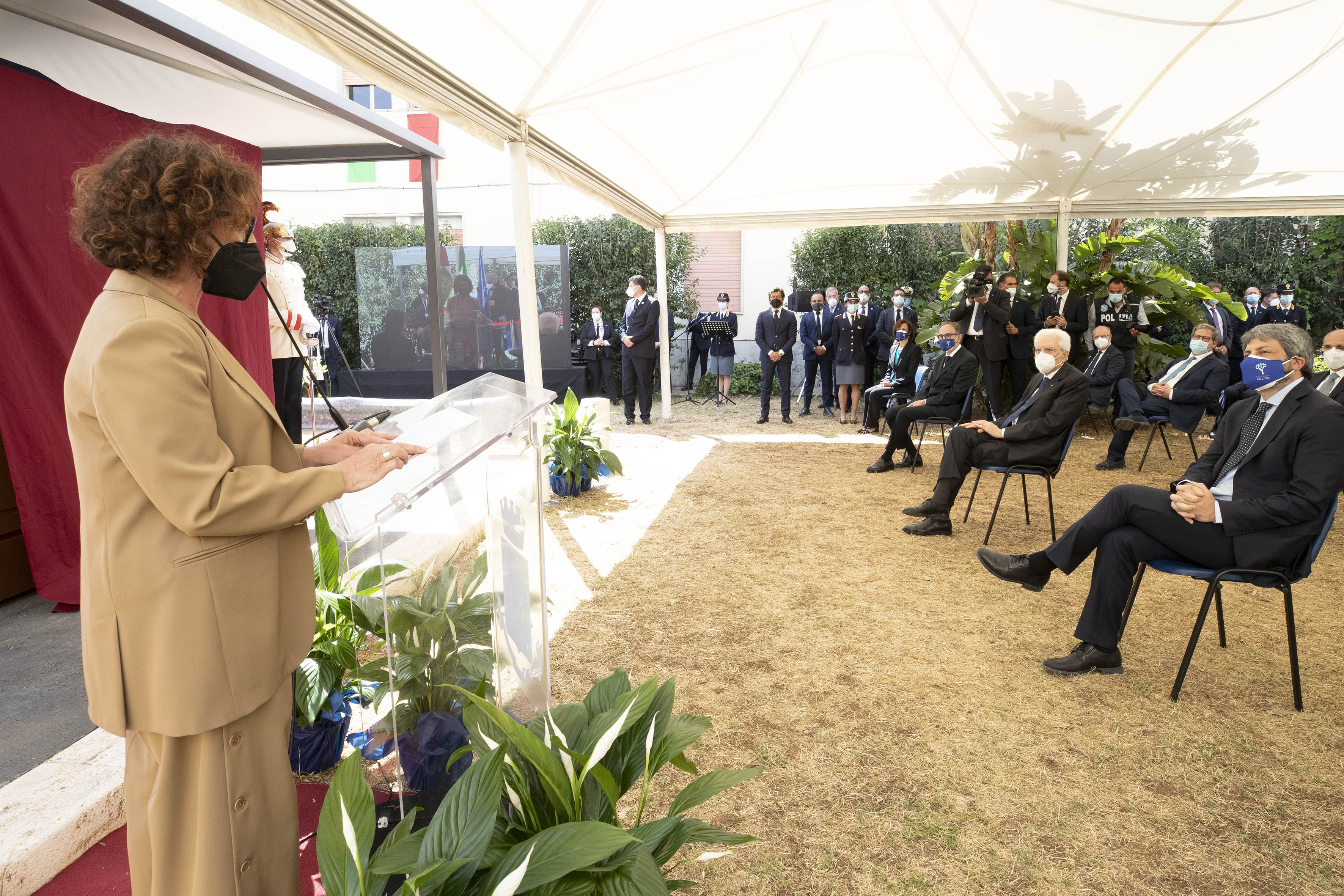 Il Presidente Sergio Mattarella alla caserma "Pietro Lungaro", in occasione della cerimonia di svelamento della teca contenente i resti della "Quarto Savona 15"