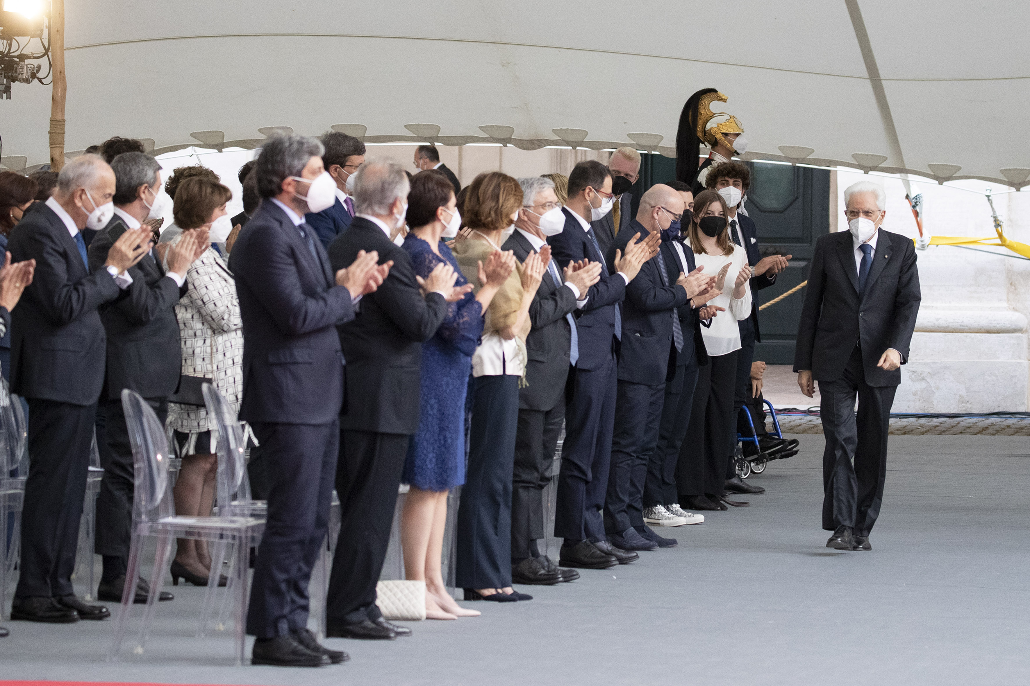 Il Presidente Sergio Mattarella al termine dell'intervento in occasione della Festa Nazionale della Repubblica