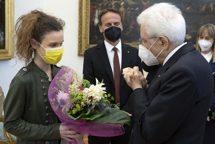 Il Presidente Sergio Mattarella al termine della Festa Nazionale della Repubblica saluta Frida Bollani