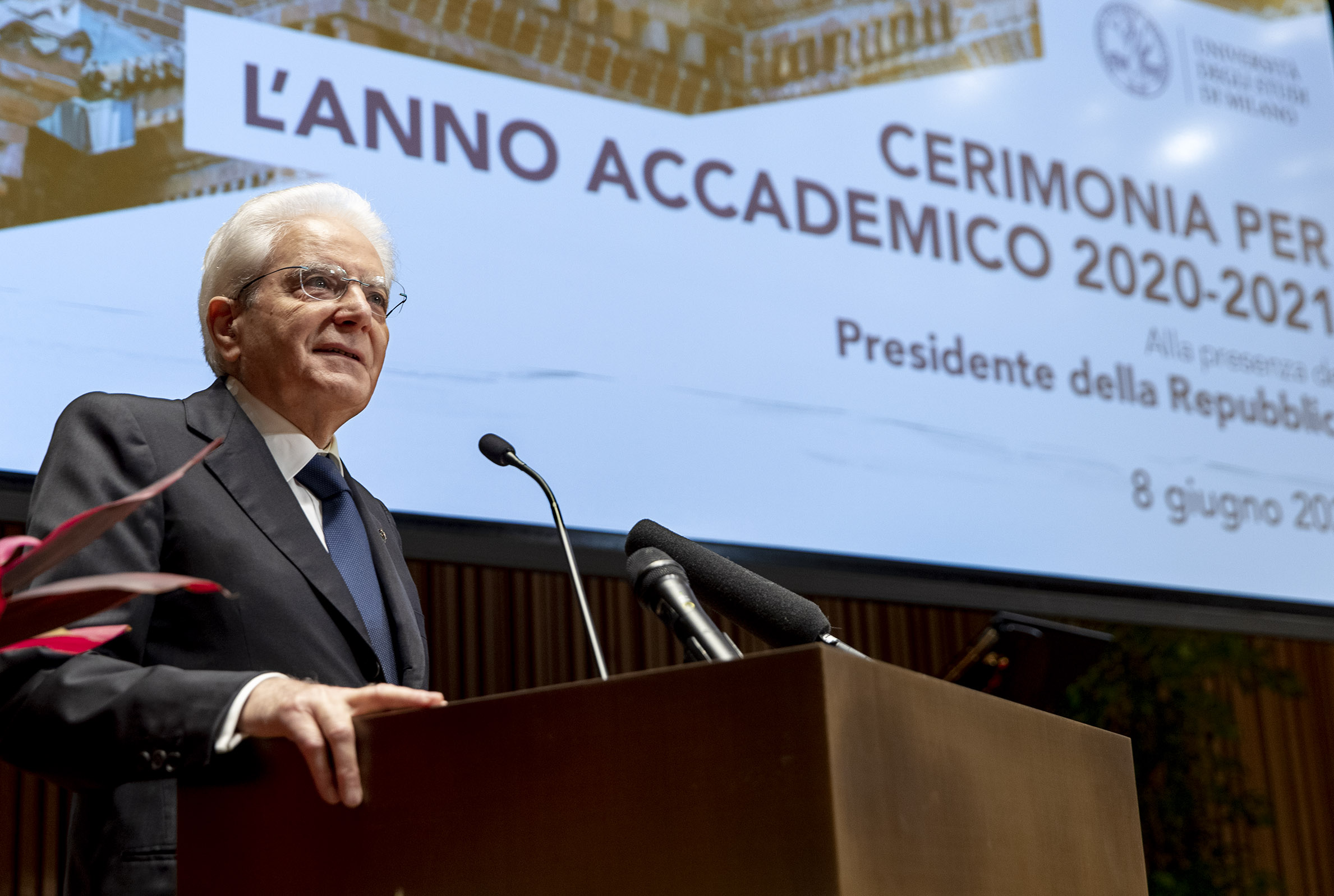 Il Presidente della Repubblica Sergio Mattarella alla cerimonia per l’anno accademico 2020- 2021 dell’Università degli Studi di Milano
