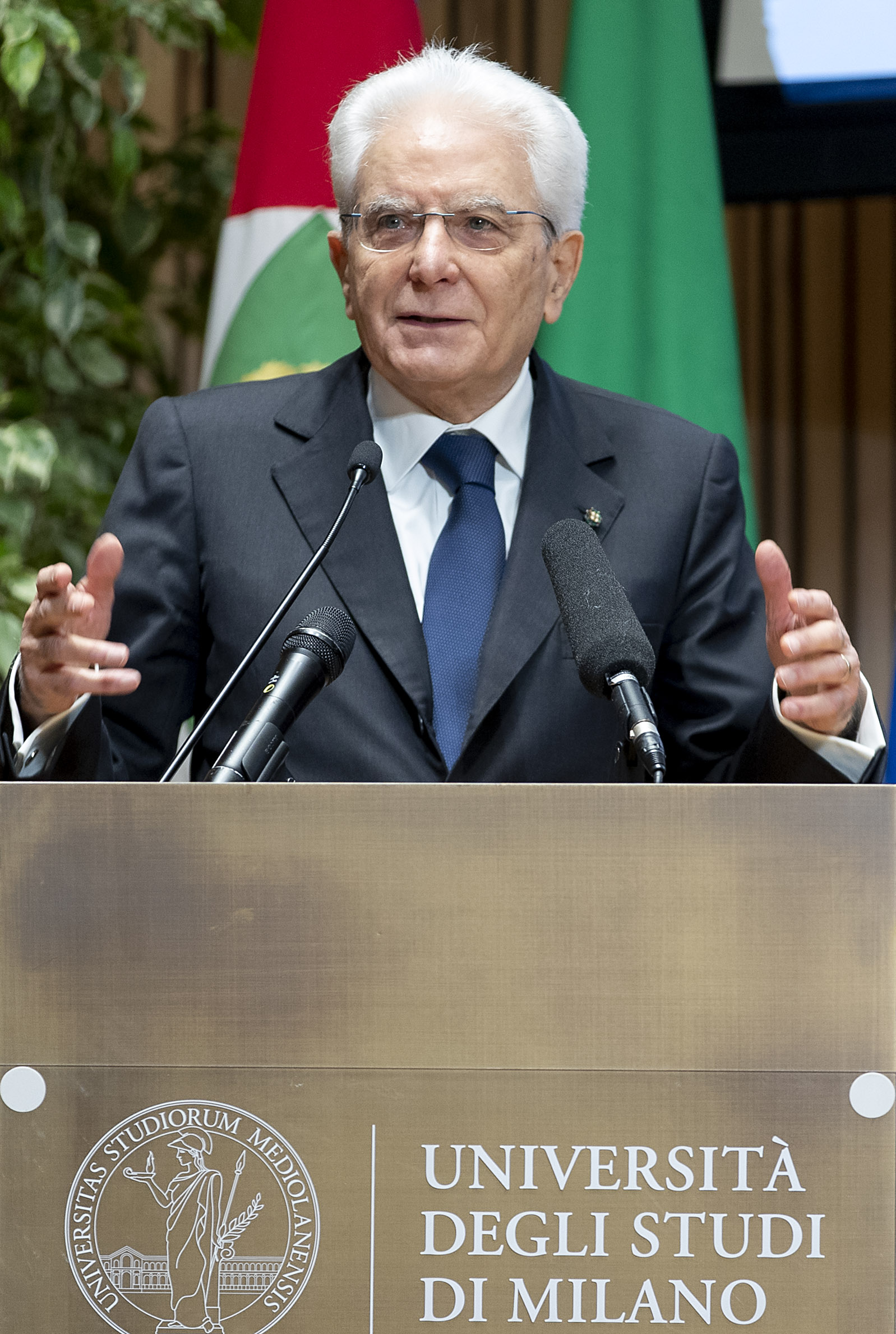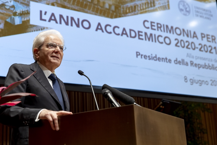 Il Presidente Sergio Mattarella nel corso della cerimonia per l’anno accademico 2020-2021 dell’Università degli Studi di Milano