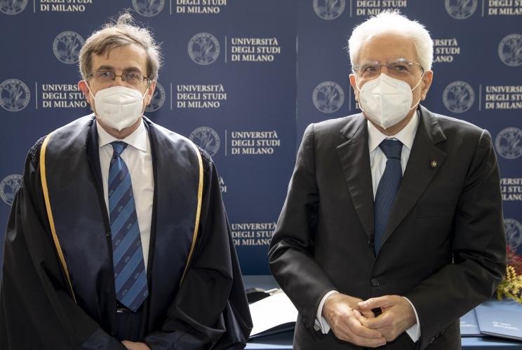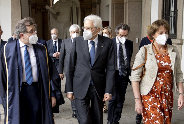 Il Presidente della Repubblica Sergio Mattarella alla cerimonia per l’anno accademico 2020- 2021 dell’Università degli Studi di Milano con il Prof. Elio Franzini, Rettore dell’Università degli Studi di Milano