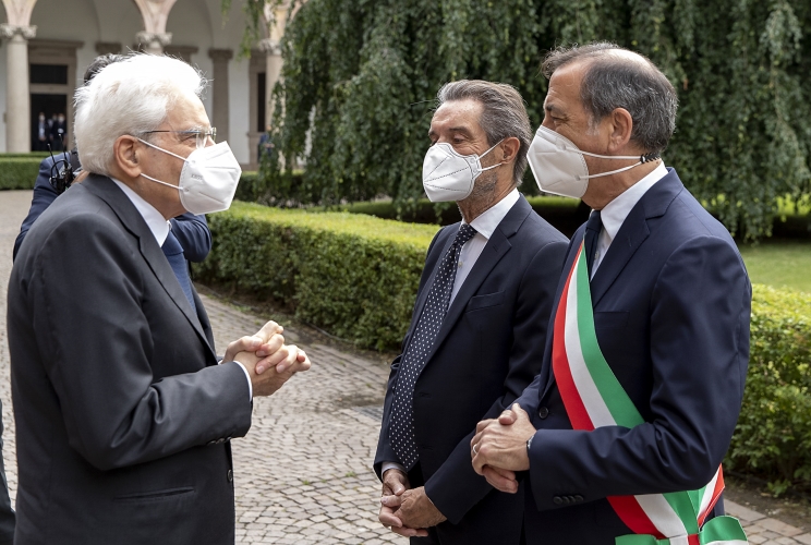 Il Presidente della Repubblica Sergio Mattarella alla cerimonia per l’anno accademico 2020- 2021 dell’Università degli Studi di Milano con Attilio Fontana, Presidente della Regione Lombardia e Giuseppe Sala, Sindaco di Milano