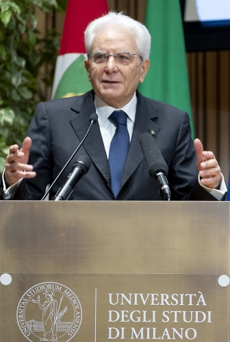Il Presidente della Repubblica Sergio Mattarella alla cerimonia per l’anno accademico 2020- 2021 dell’Università degli Studi di Milano risponde al saluto degli studenti