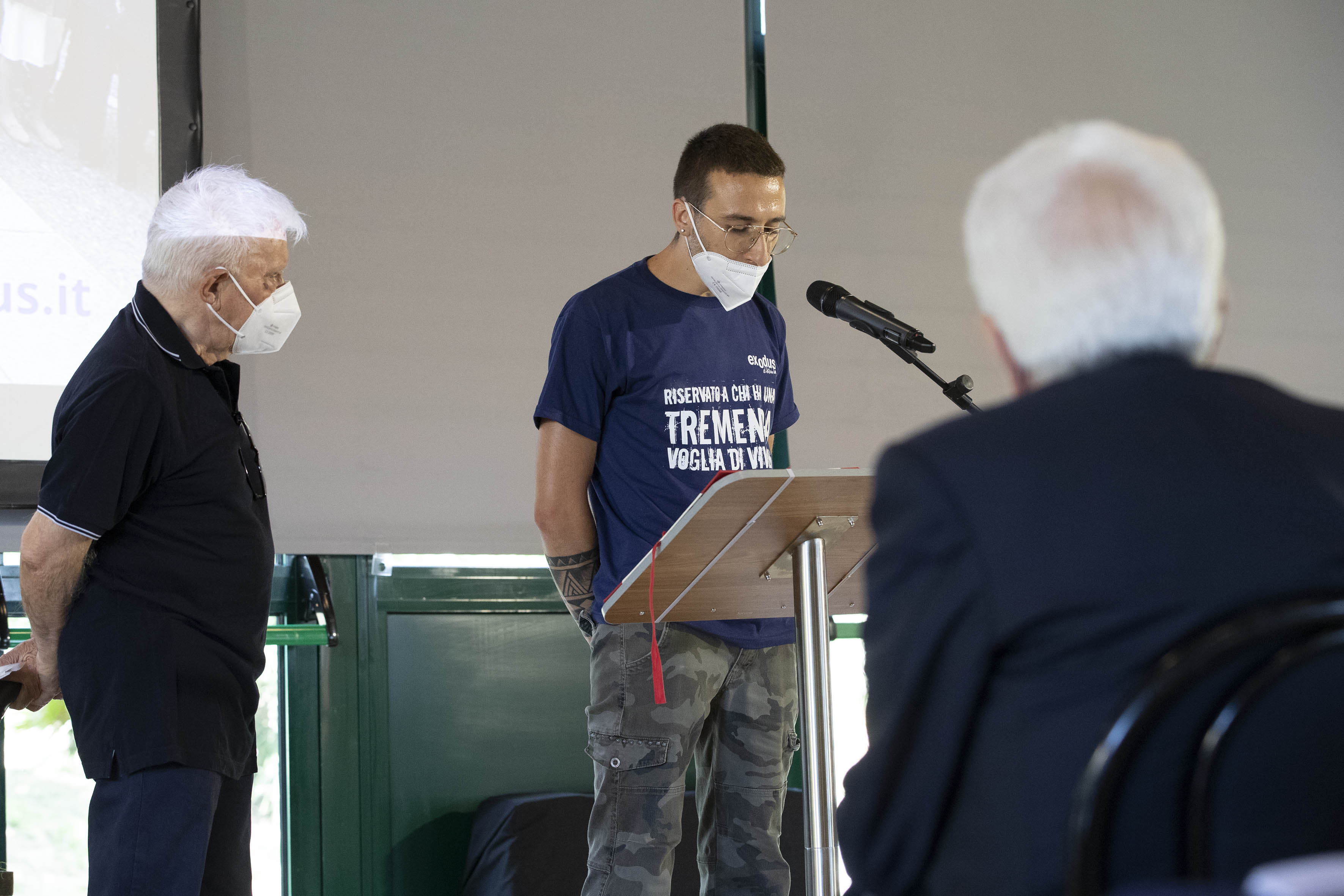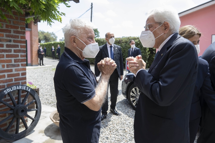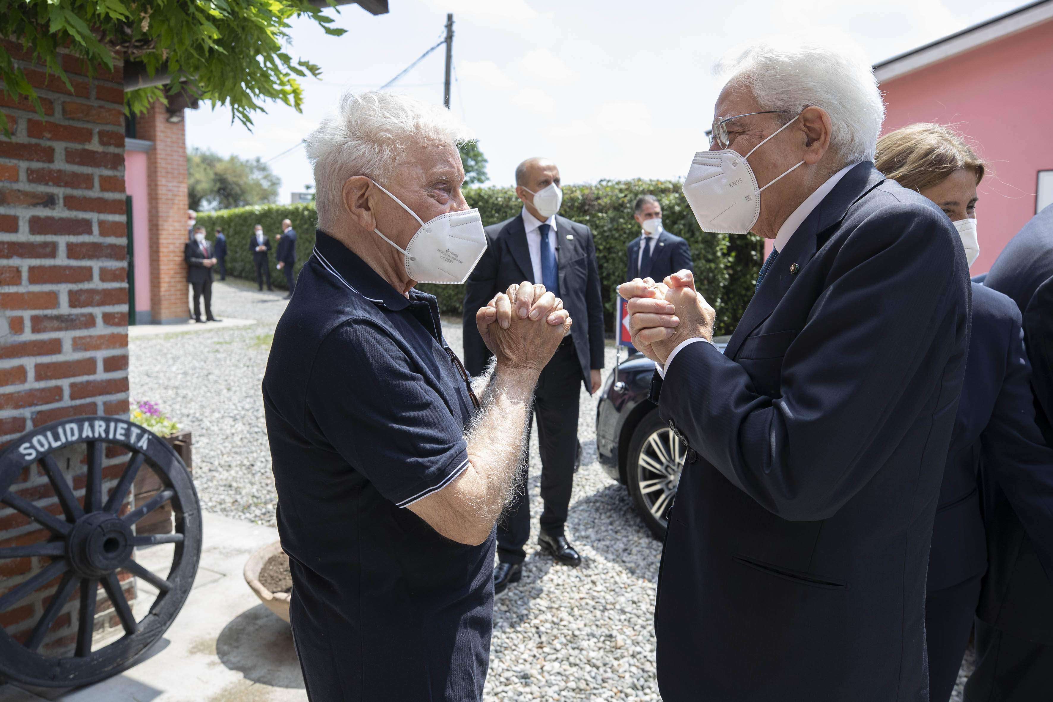Il Presidente della Repubblica Sergio Mattarella con Don Antonio Mazzi, in occasione della visita alla Fondazione Exodus Onlus
