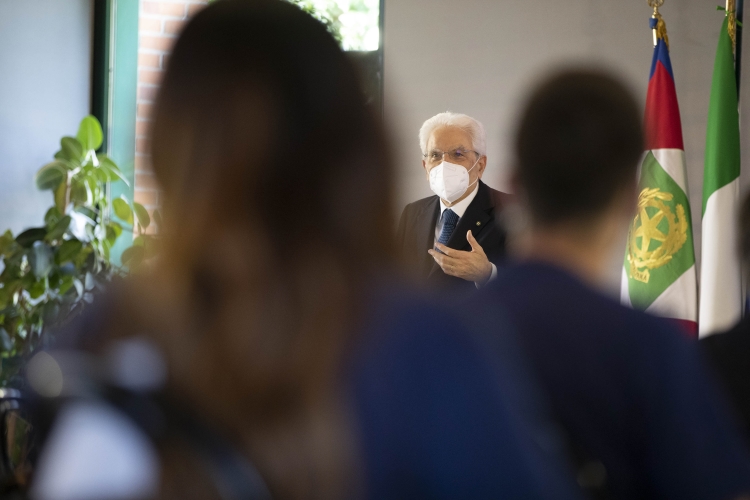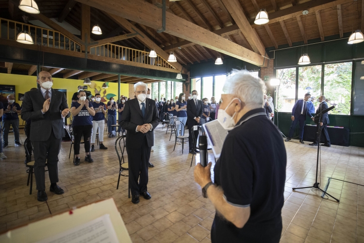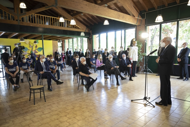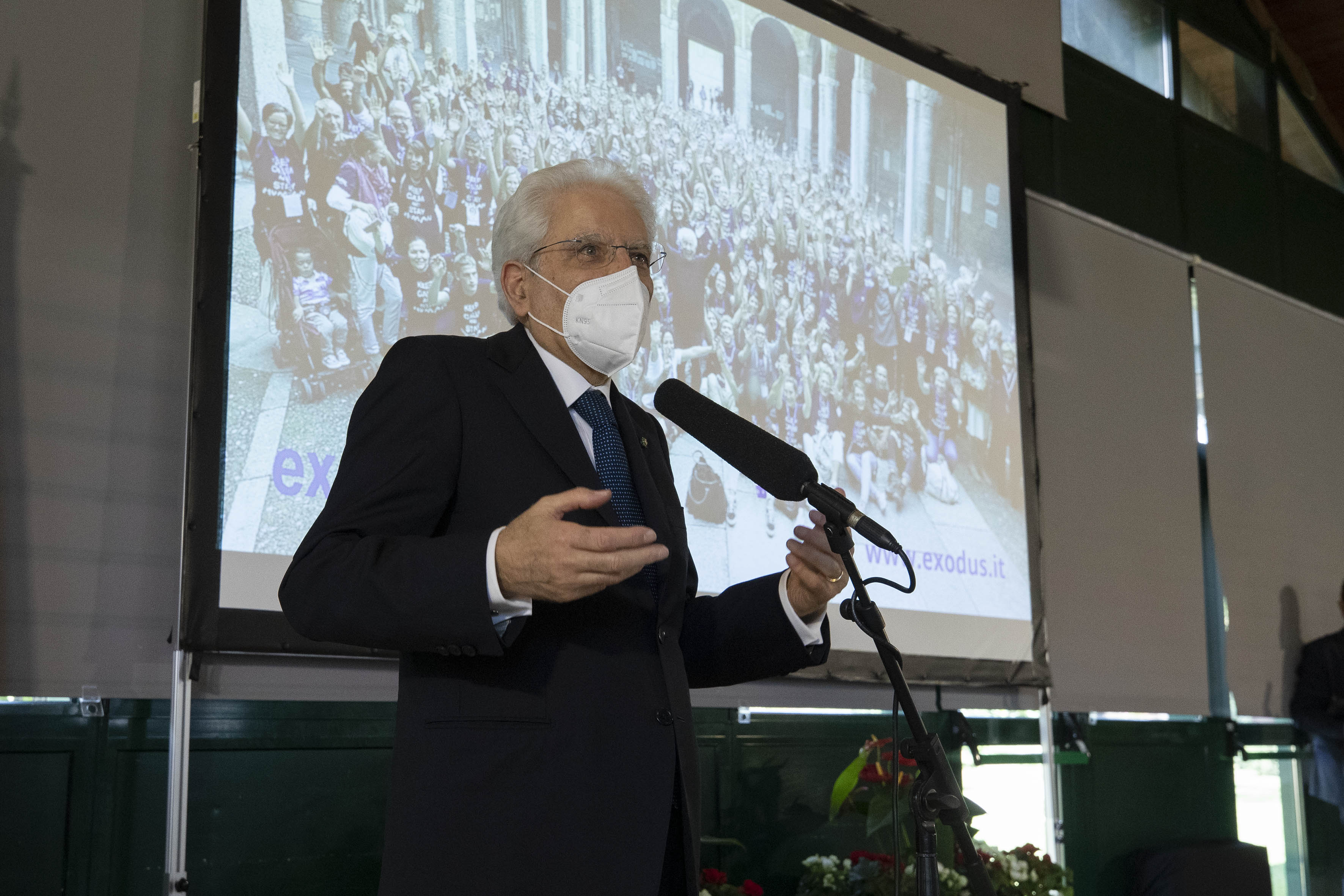 Il Presidente della Repubblica Sergio Mattarella in occasione della visita alla Fondazione Exodus Onlus