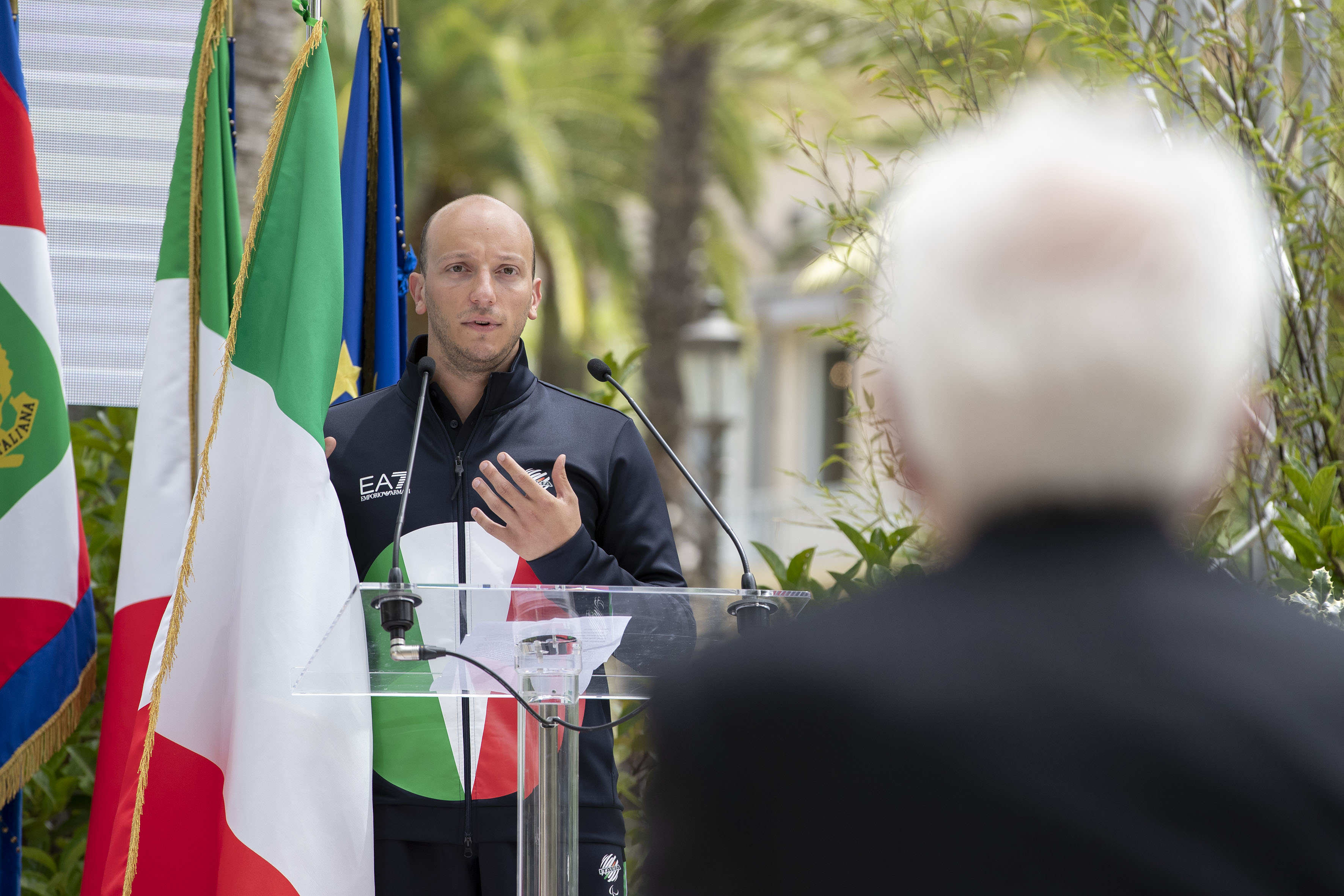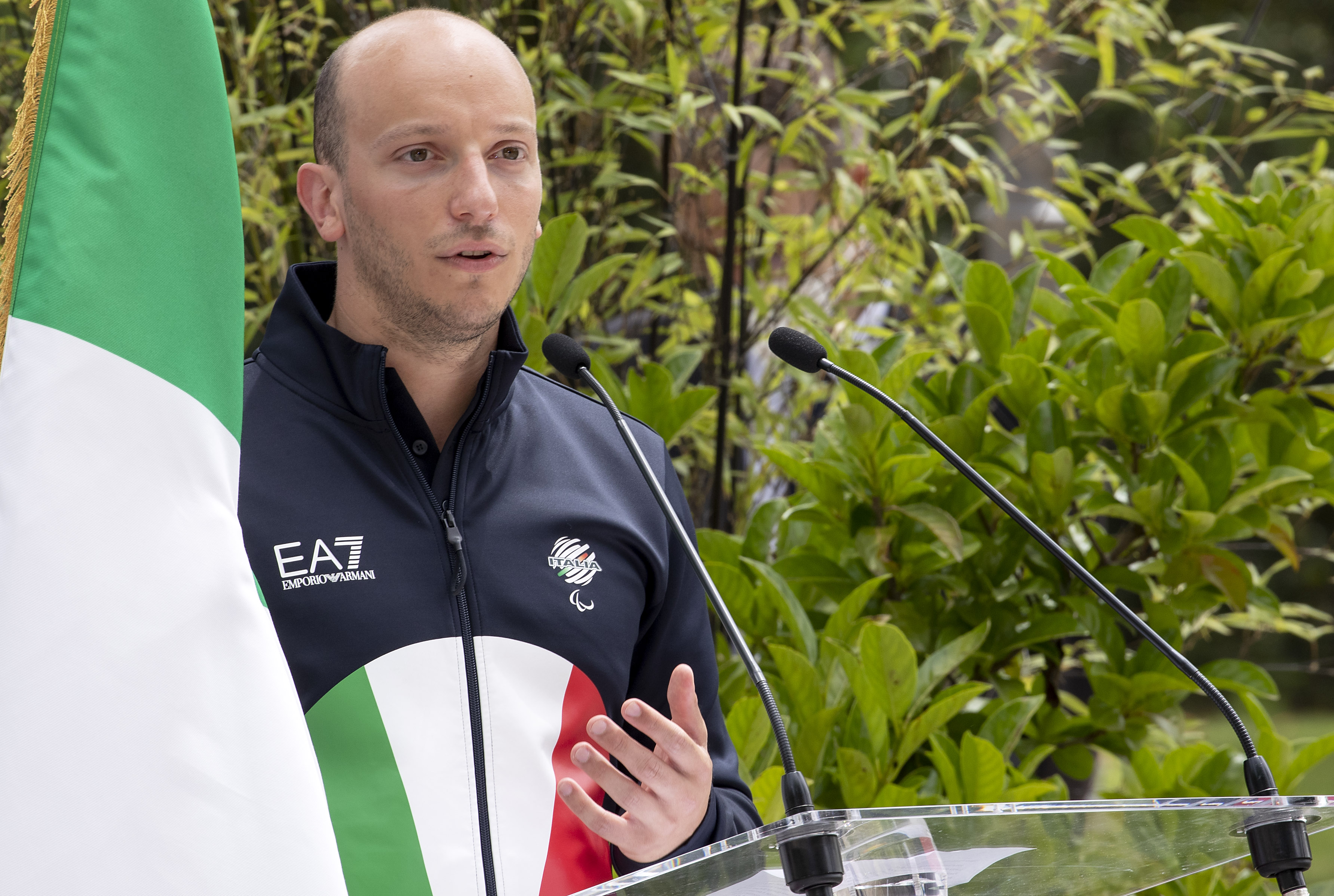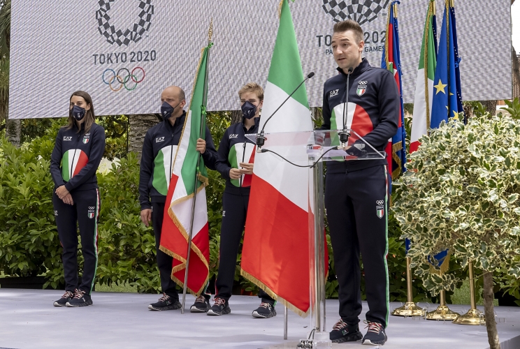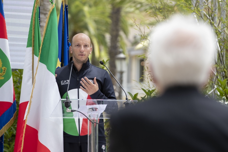 L'intervento dell'atleta Federico Morlacchi alla cerimonia di consegna della bandiera agli atleti italiani in partenza per i Giochi Olimpici e Paralimpici di Tokyo 2020