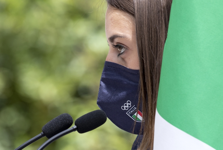 L'intervento dell'atleta Jessica Rossi alla cerimonia di consegna della bandiera agli atleti italiani in partenza per i Giochi Olimpici e Paralimpici di Tokyo 2020