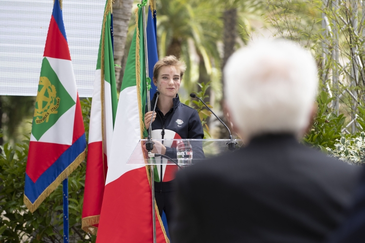 L'intervento dell'atleta Beatrice Vio alla cerimonia di consegna della bandiera agli atleti italiani in partenza per i Giochi Olimpici e Paralimpici di Tokyo 2020