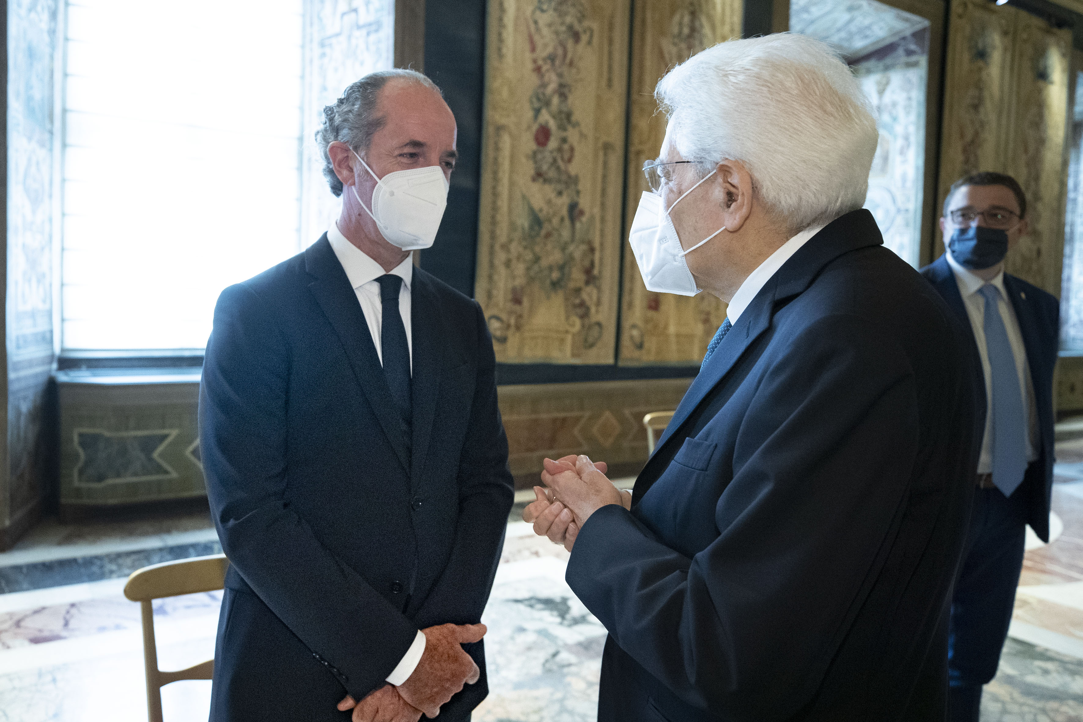 Il Presidente della Repubblica Sergio Mattarella con Luca Zaia presidente della Regione Veneto,in occasione dell'incontro con una delegazione della Conferenza delle Regioni e delle Province Autonome