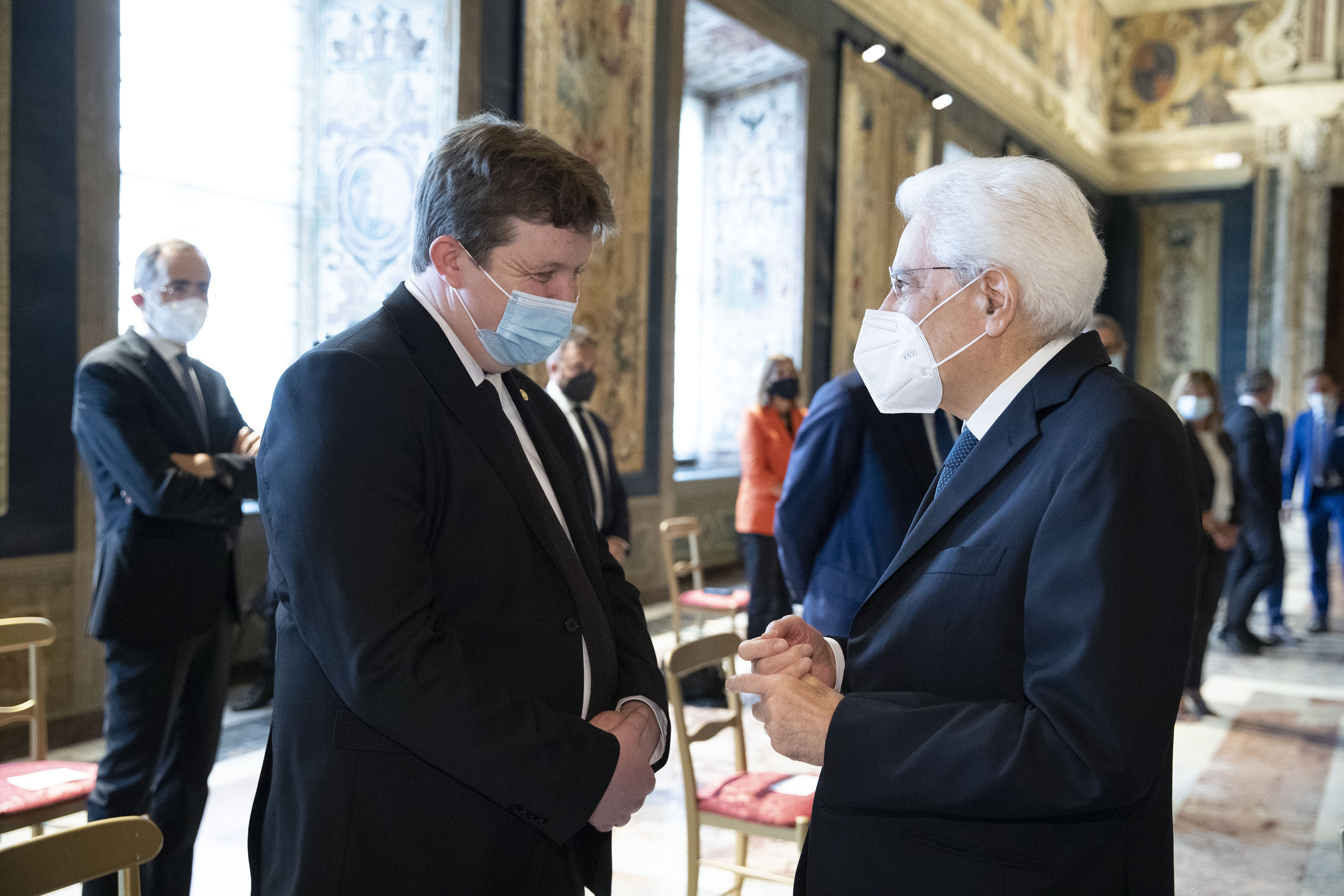 Il Presidente della Repubblica Sergio Mattarella con Alessandro Piana Vice Presidente regione Liguria,in occasione dell'incontro con una delegazione della Conferenza delle Regioni e delle Province Autonome