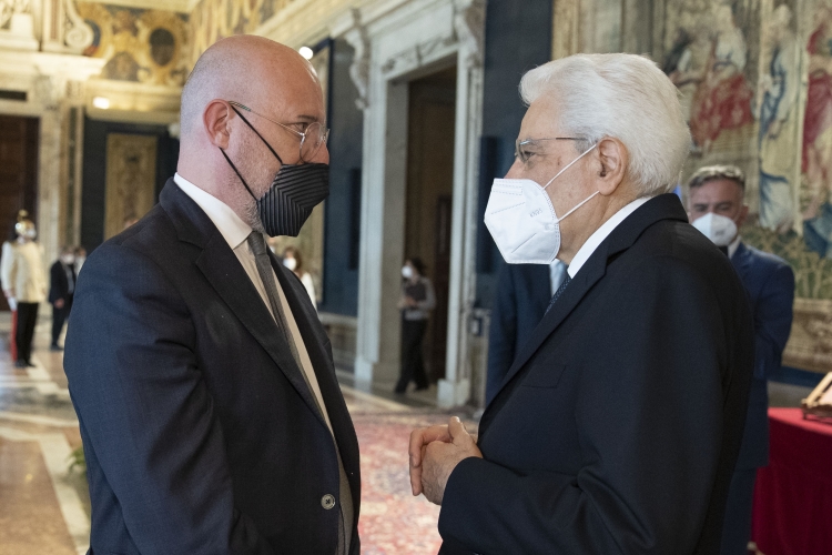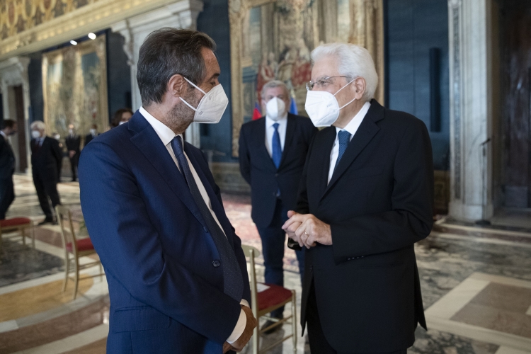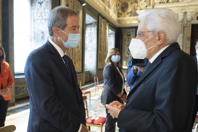 Il Presidente della Repubblica Sergio Mattarella con Eugenio Giani, presidente della Regione Toscana, in occasione dell'incontro con una delegazione della Conferenza delle Regioni e delle Province Autonome