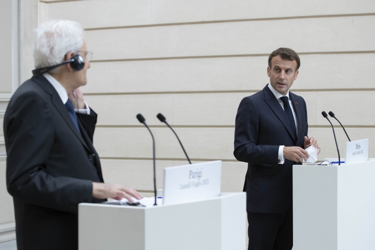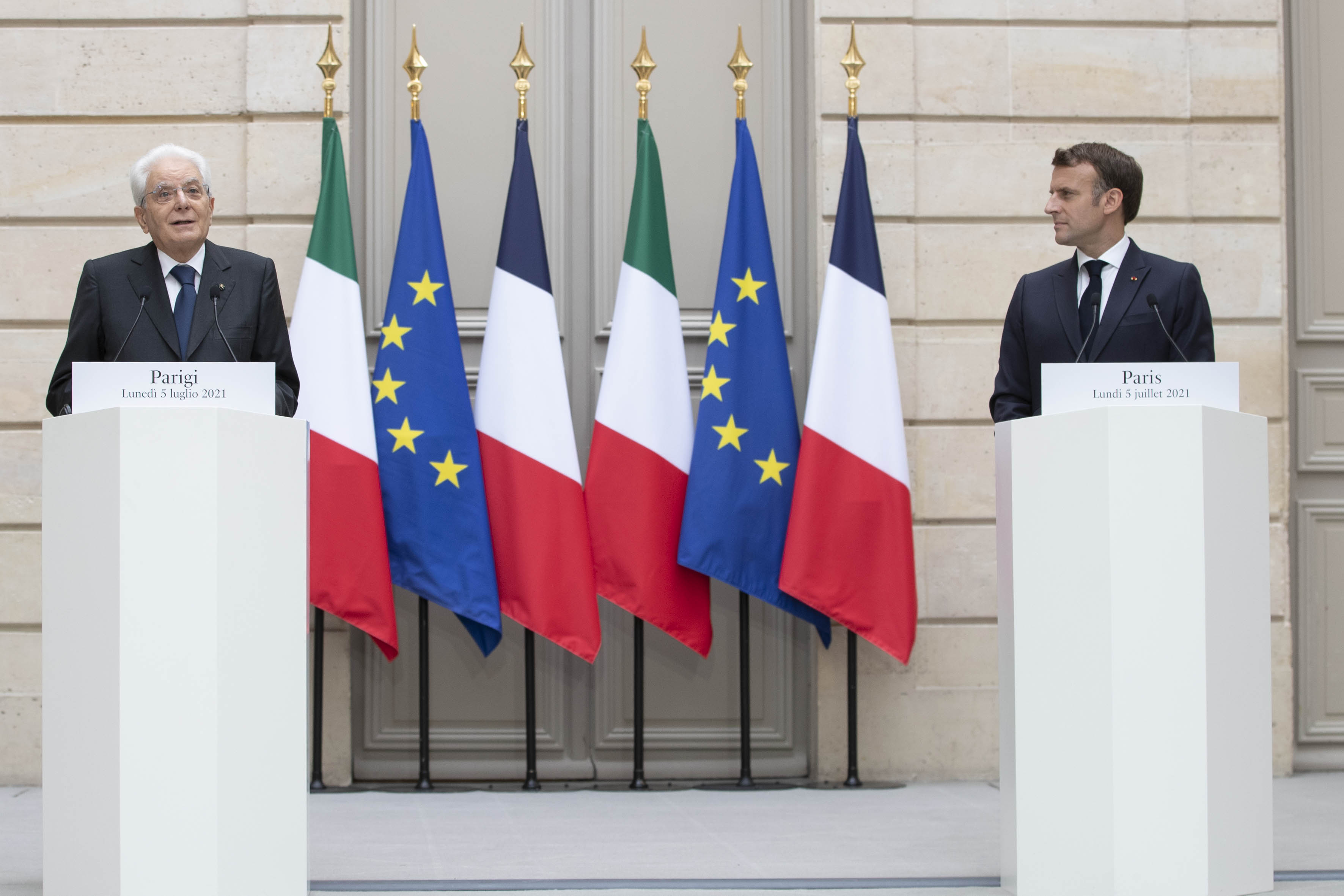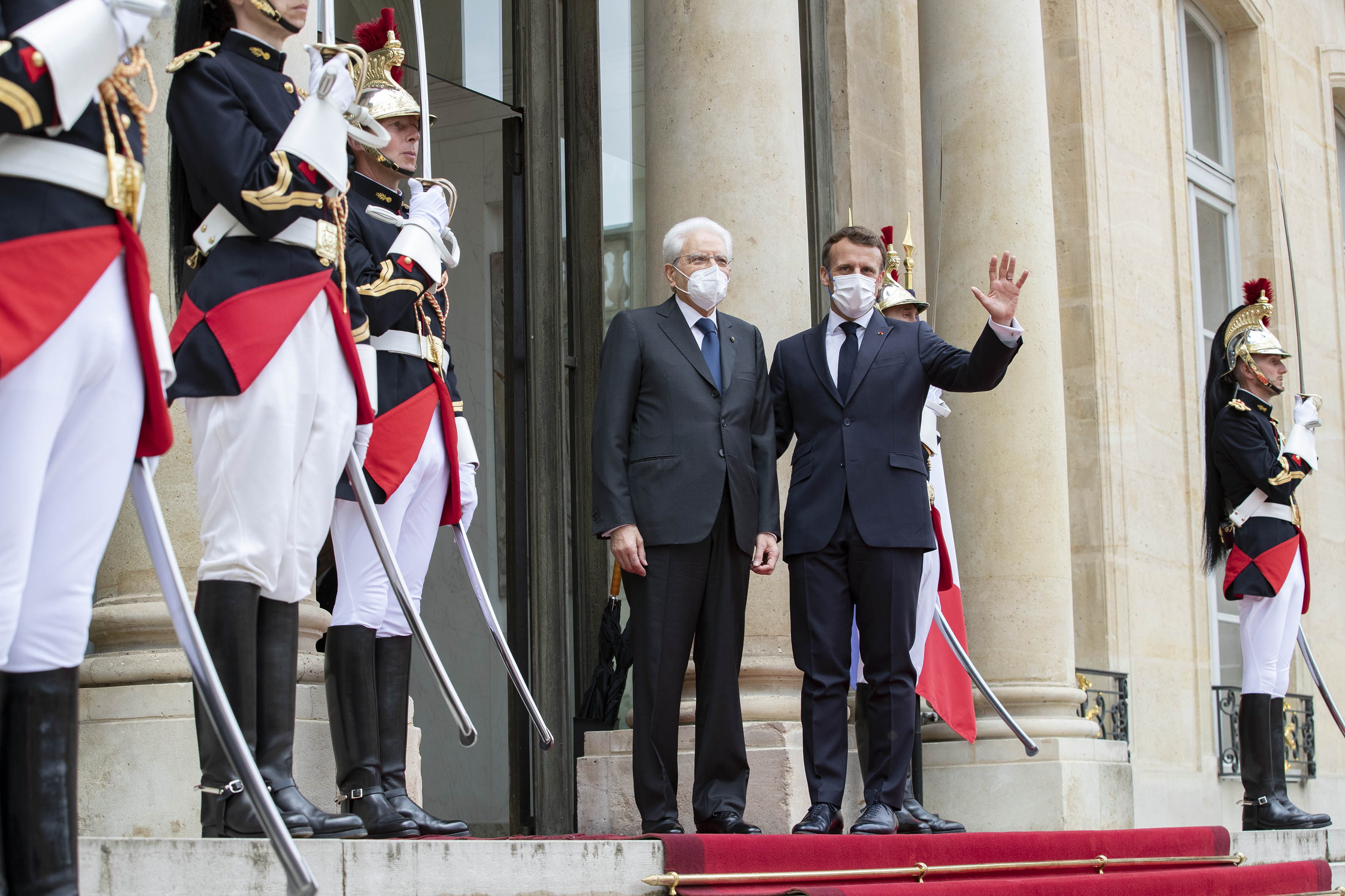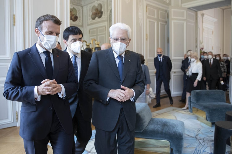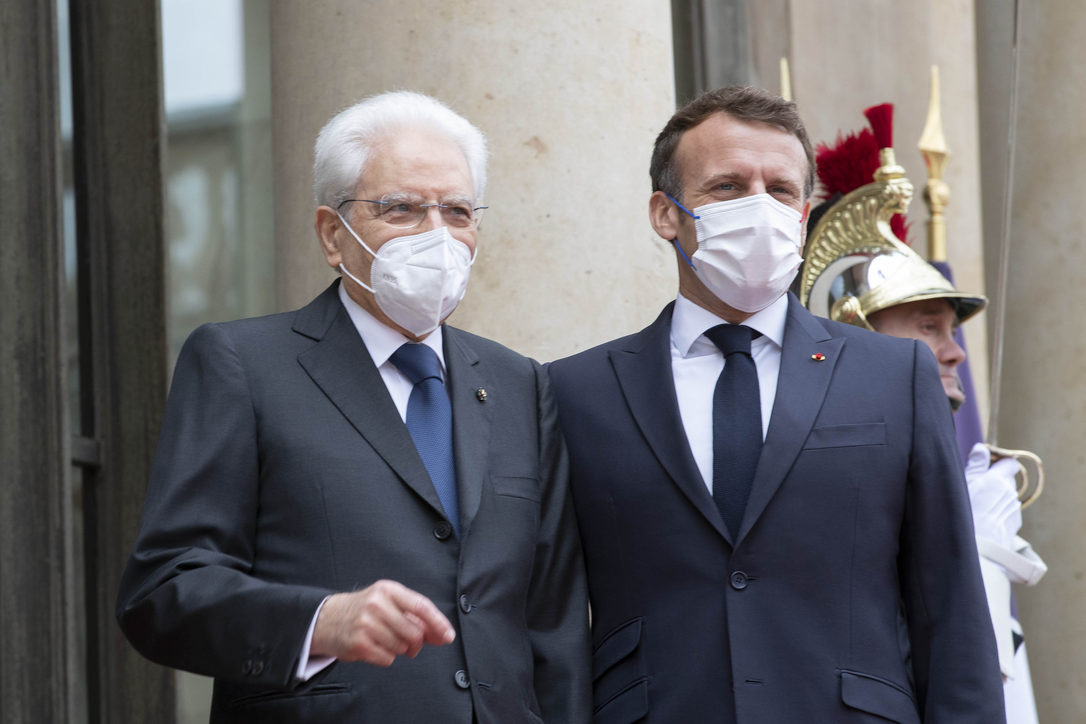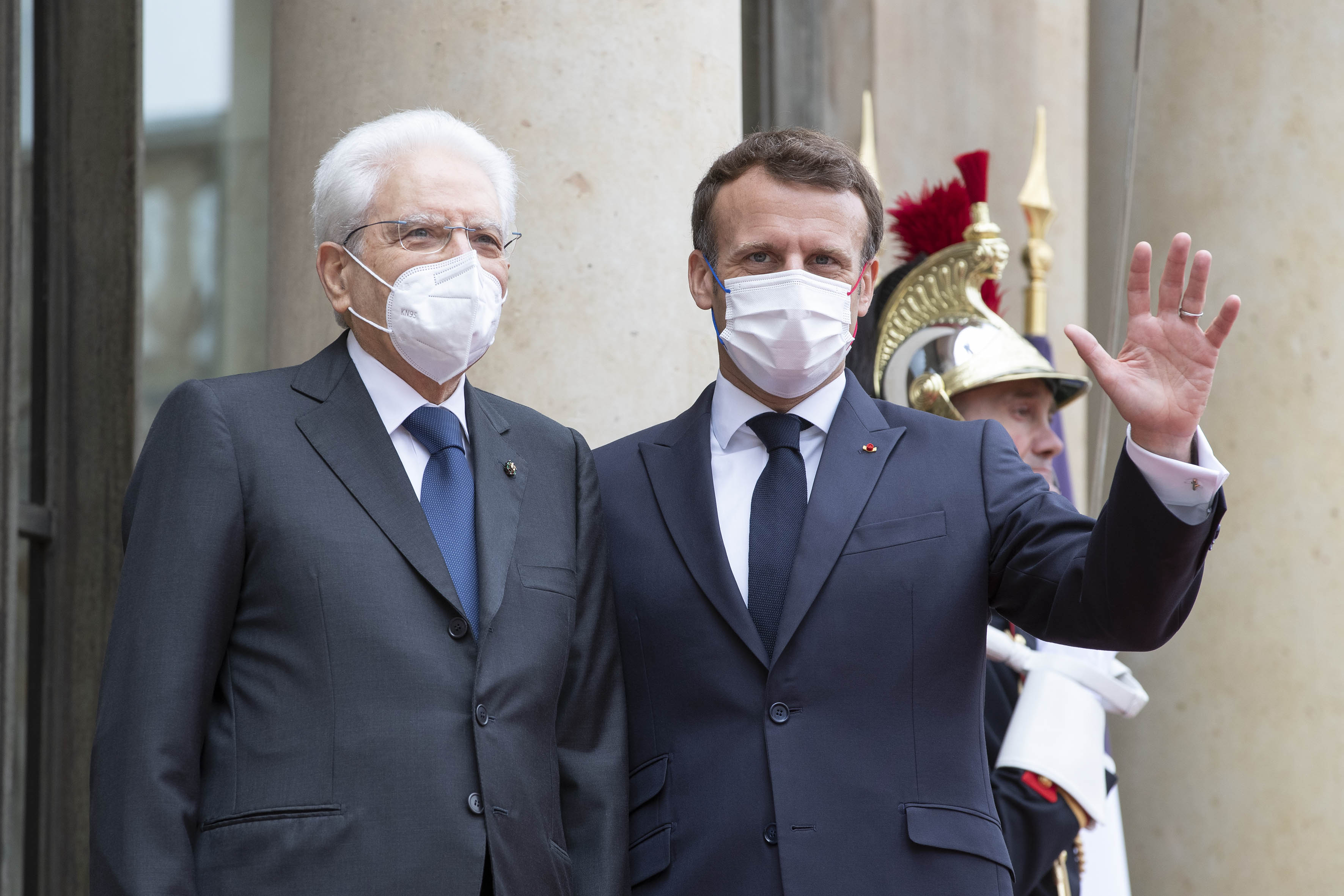 Il Presidente della Repubblica Sergio Mattarella con Emmanuel Macron, Presidente della Repubblica Francese