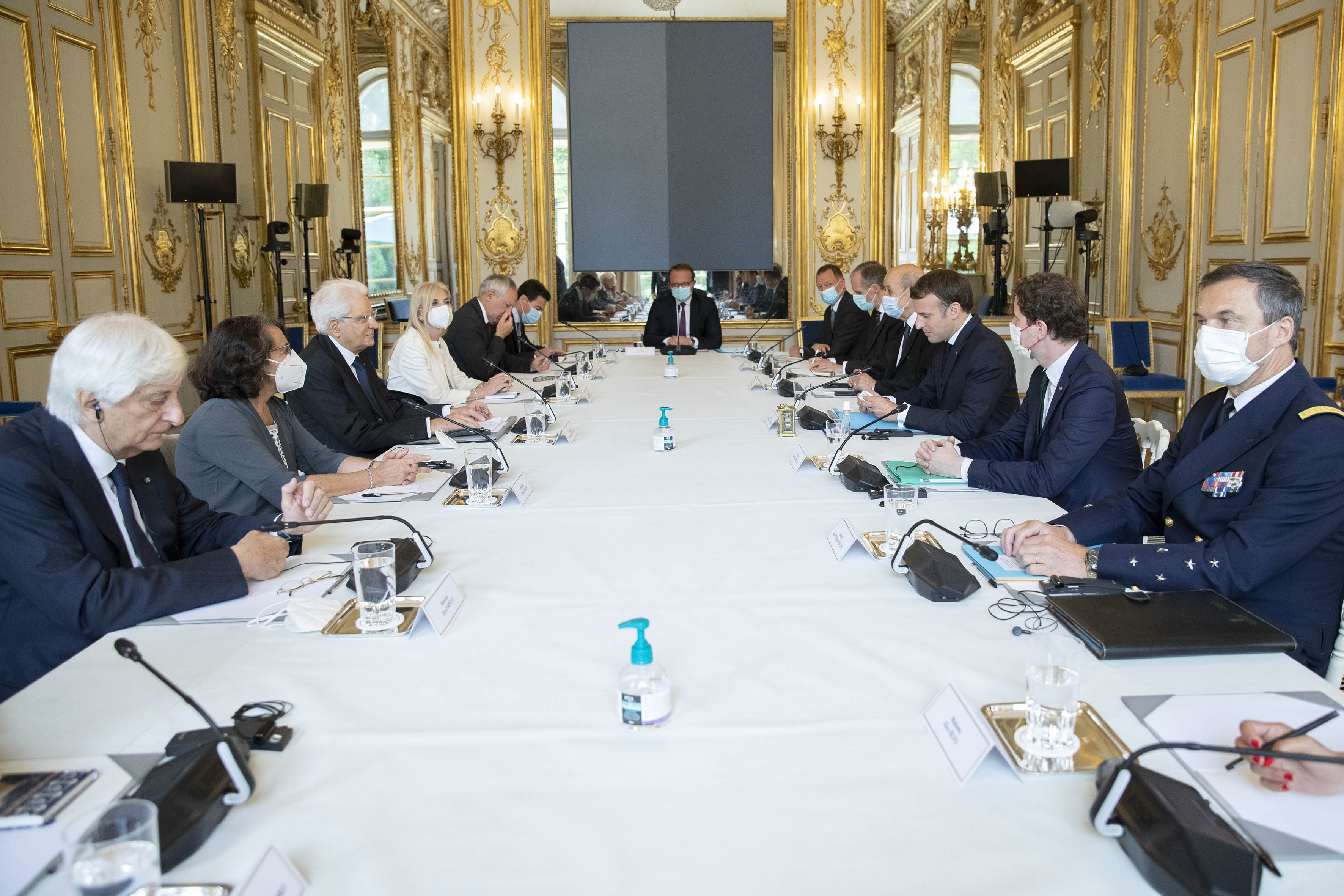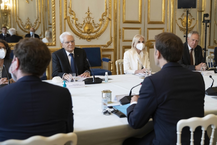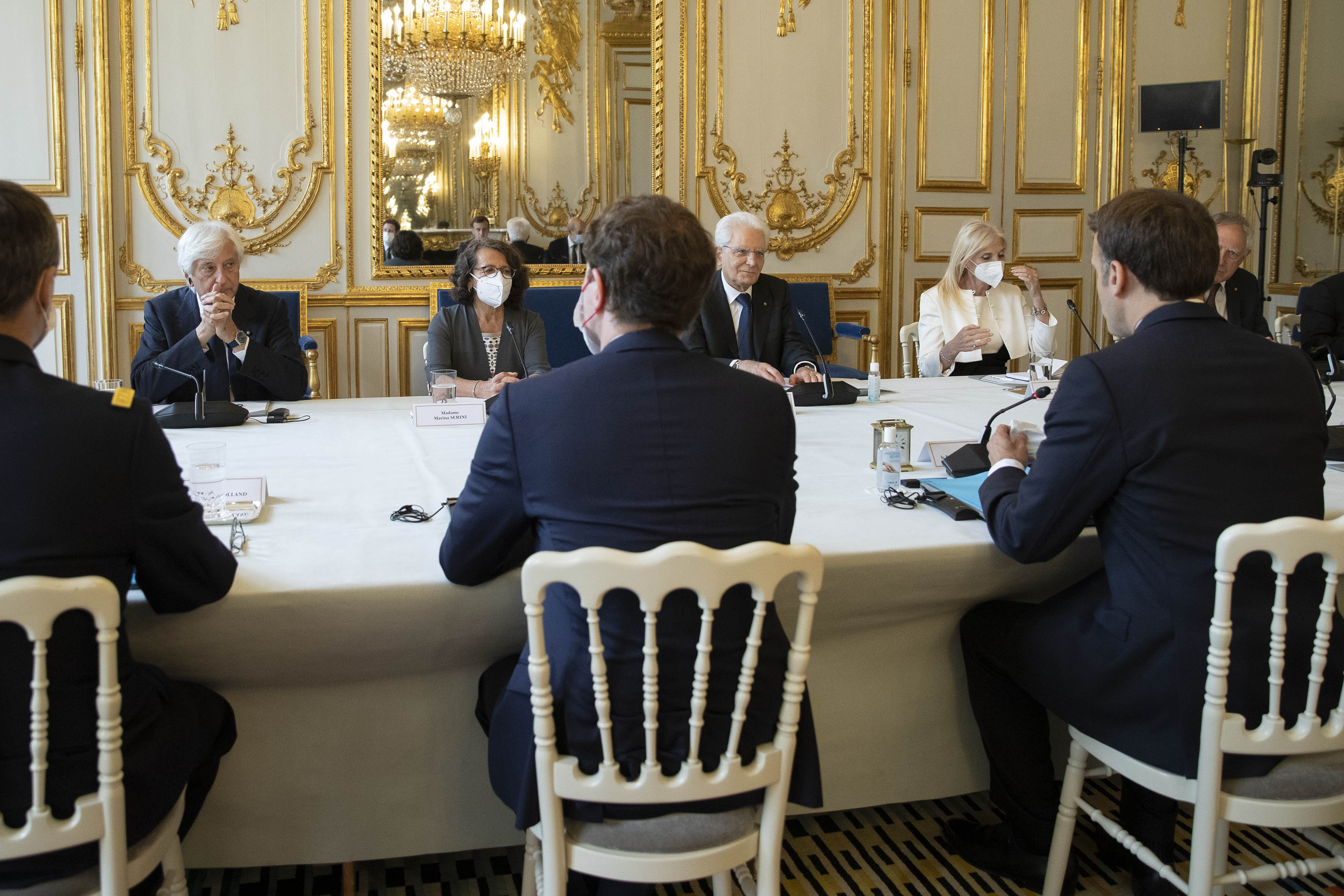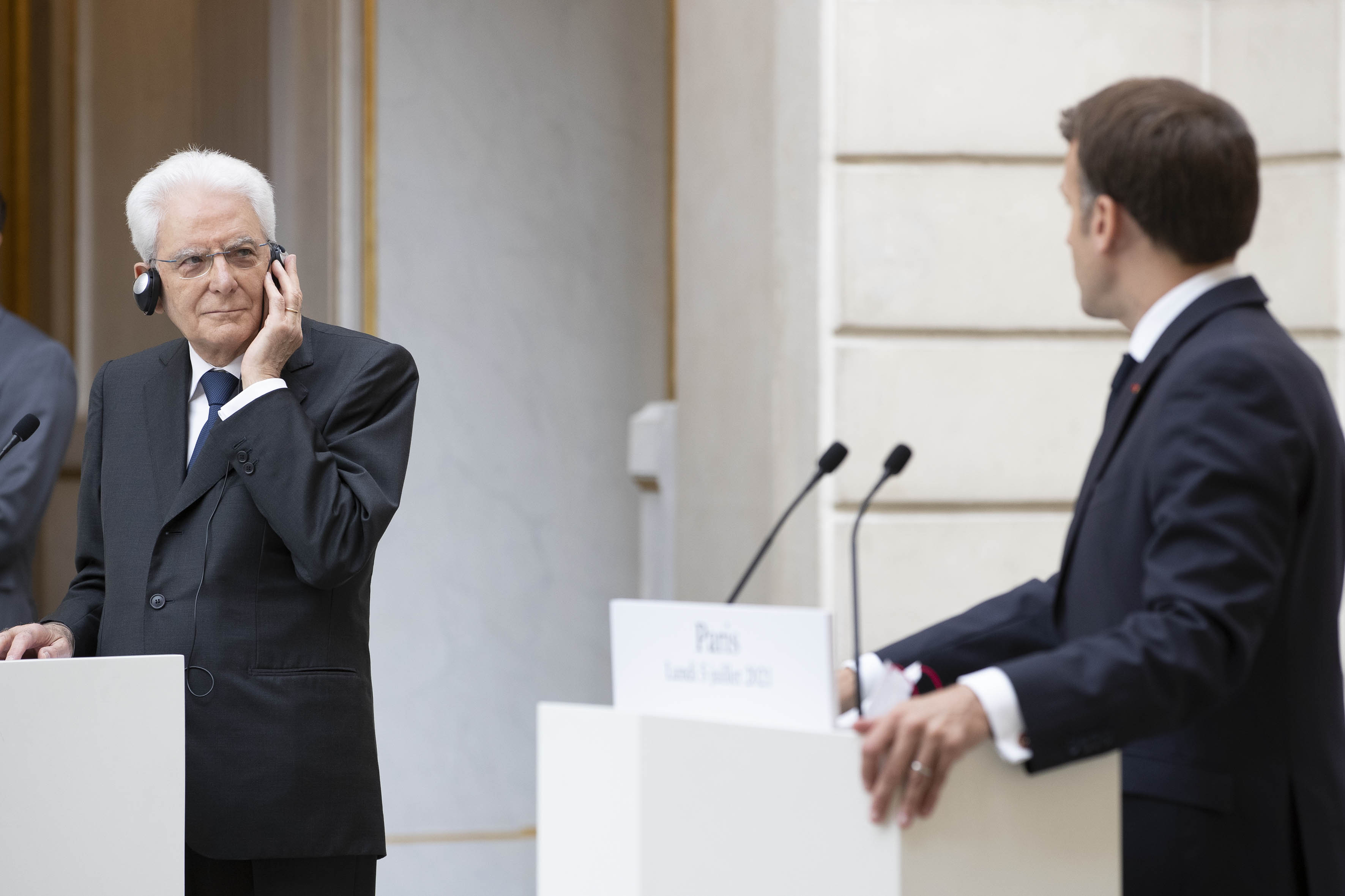Il Presidente della Repubblica Sergio Mattarella con Emmanuel Macron, Presidente della Repubblica Francese, durante i colloqui