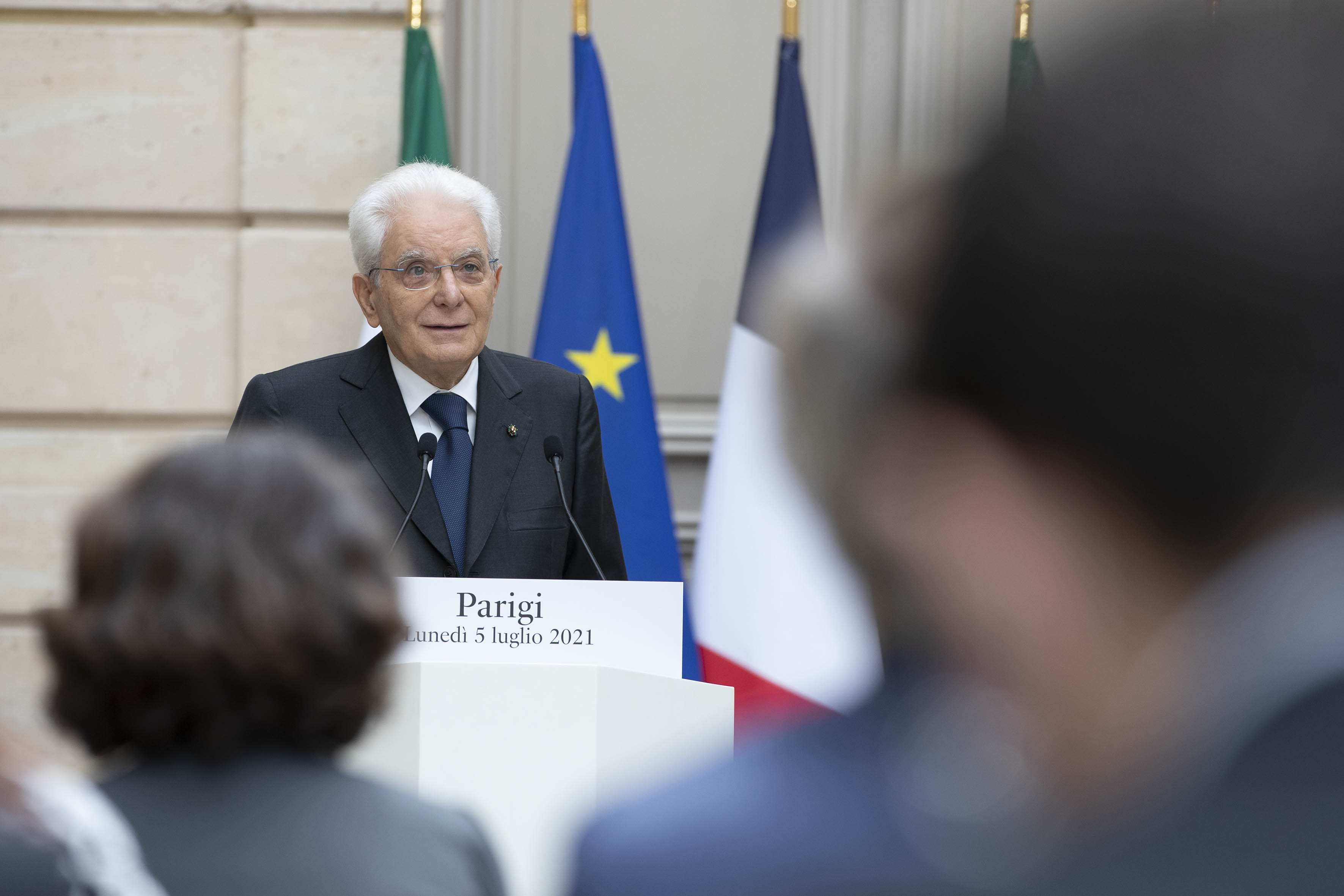 Il Presidente della Repubblica Sergio Mattarella durante le dichiarazioni alla stampa