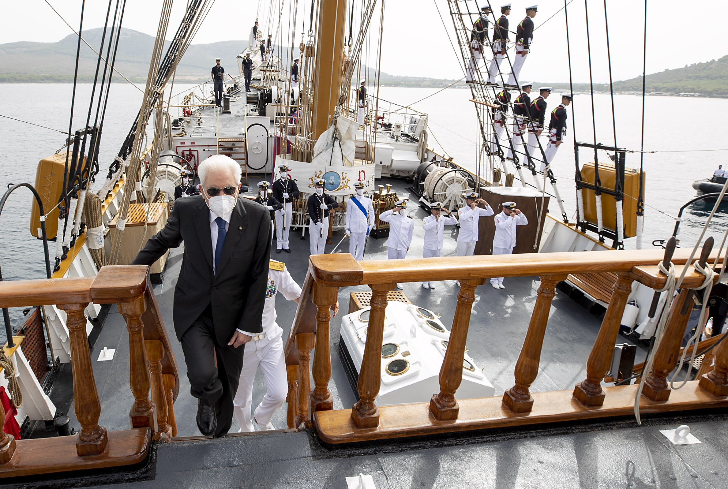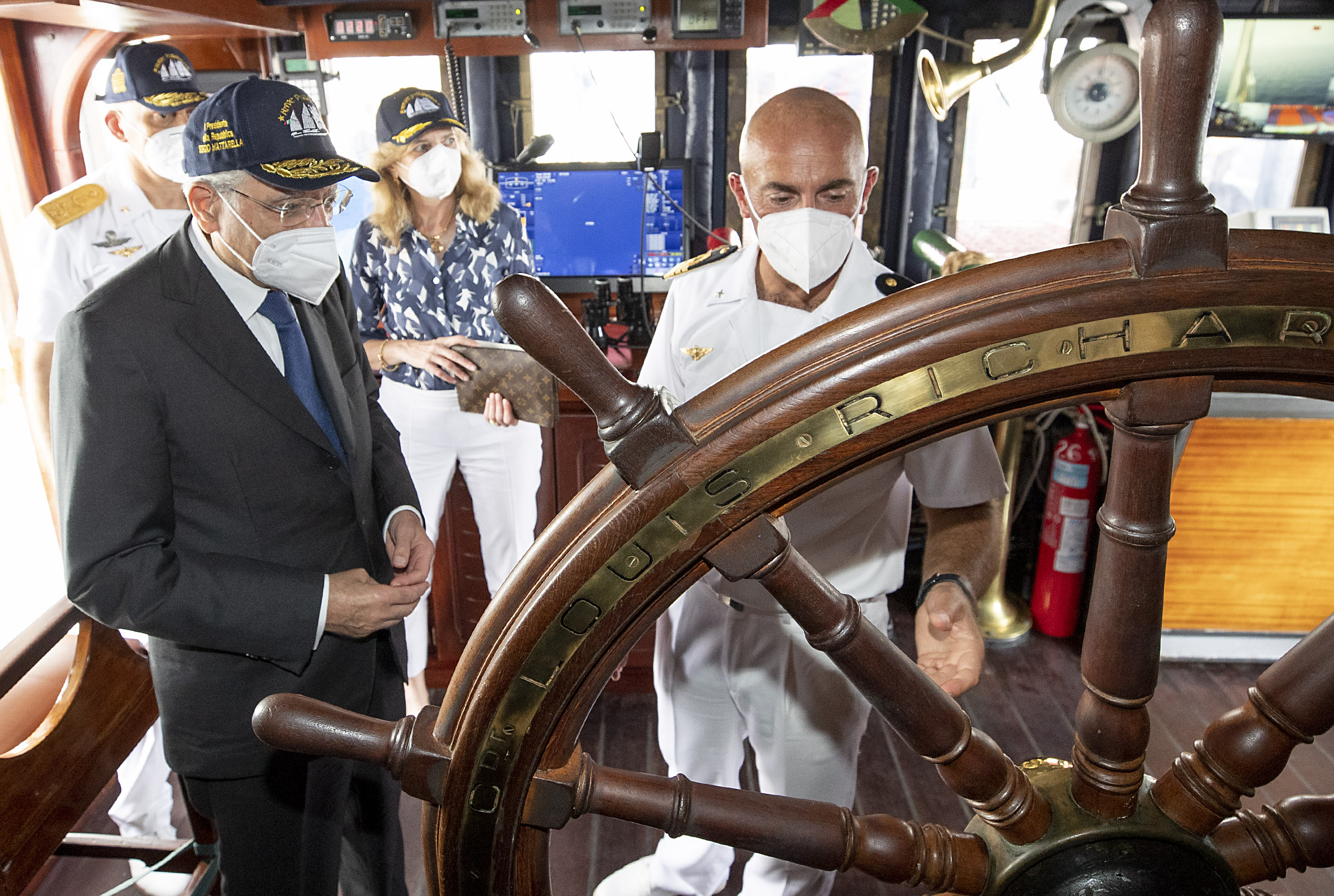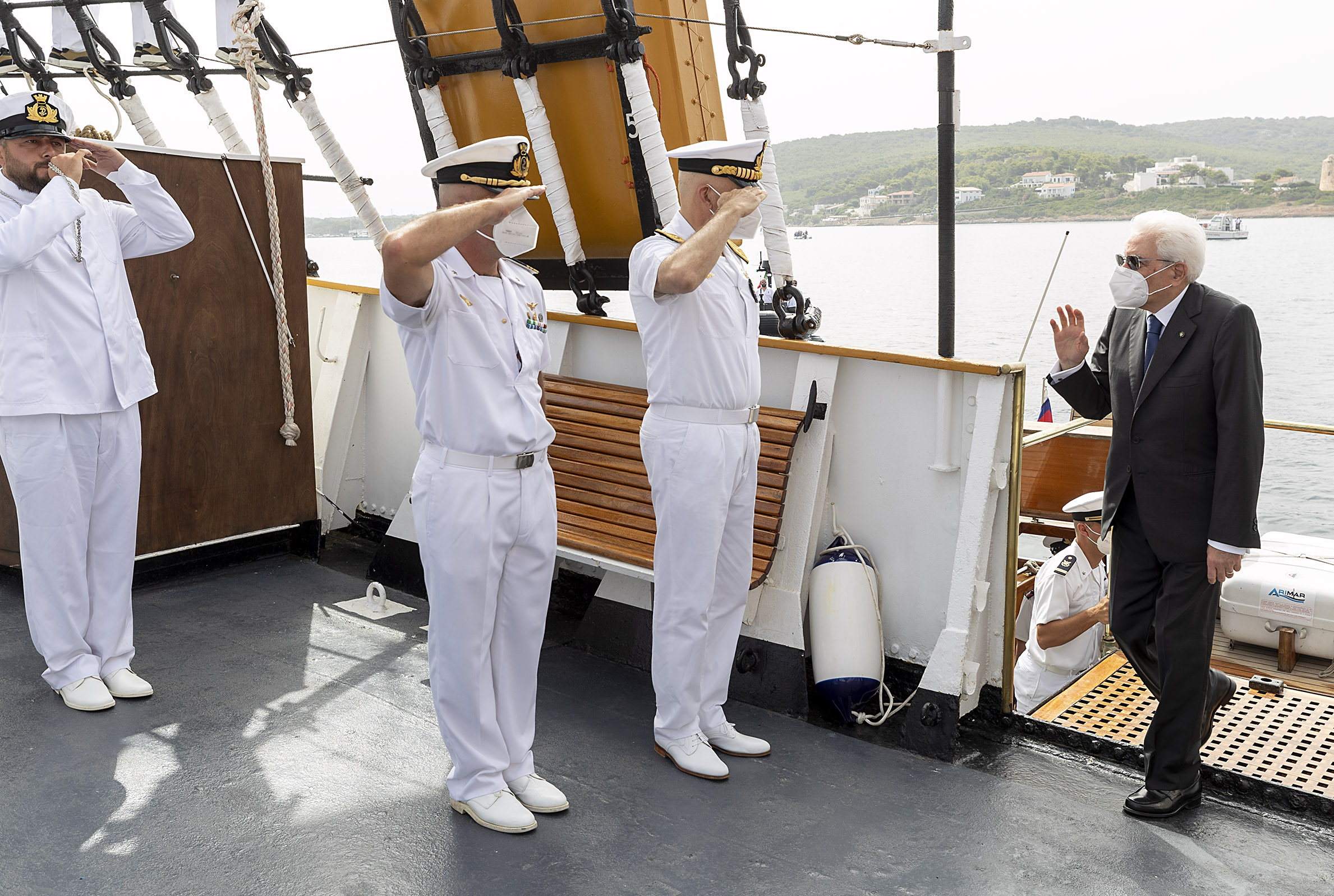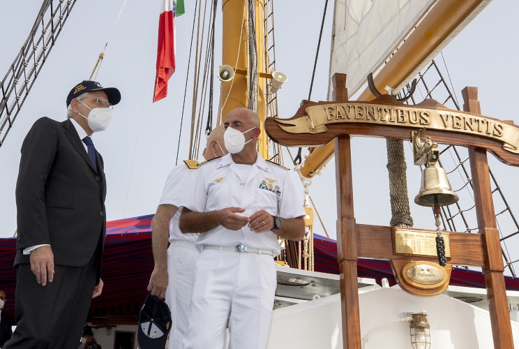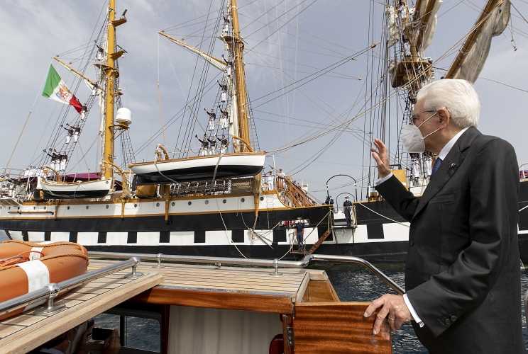 Il Presidente Sergio Mattarella visita la nave scuola Palinuro della Marina militare
