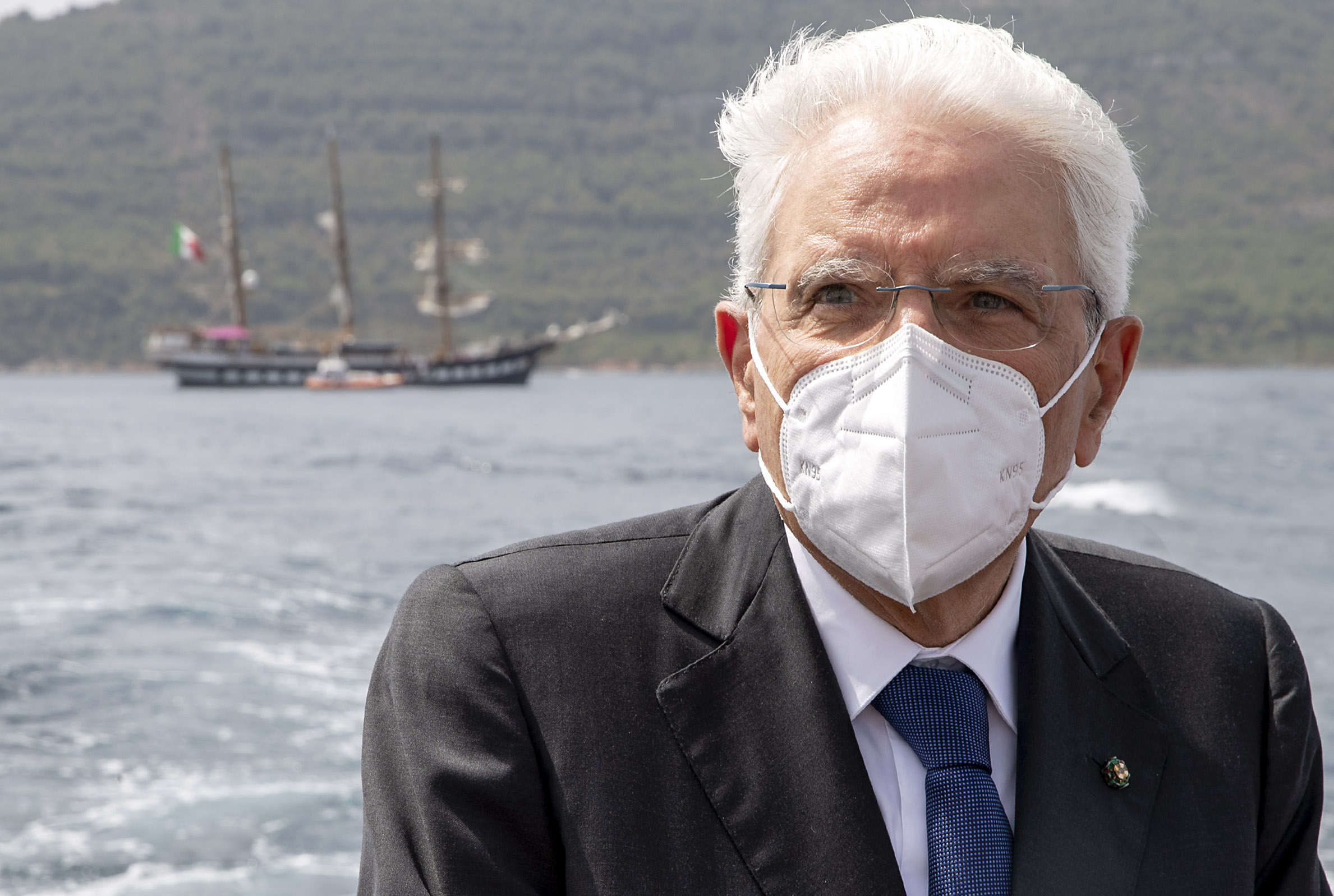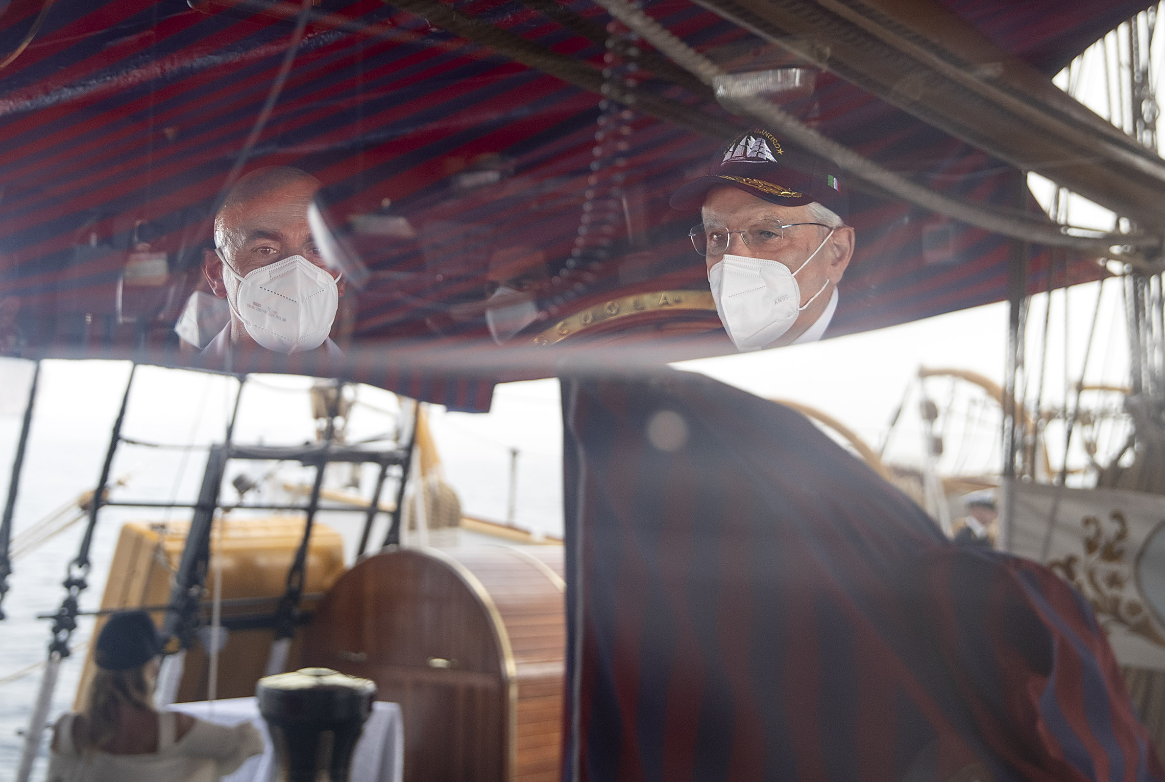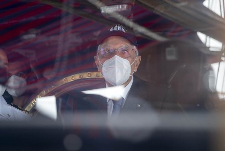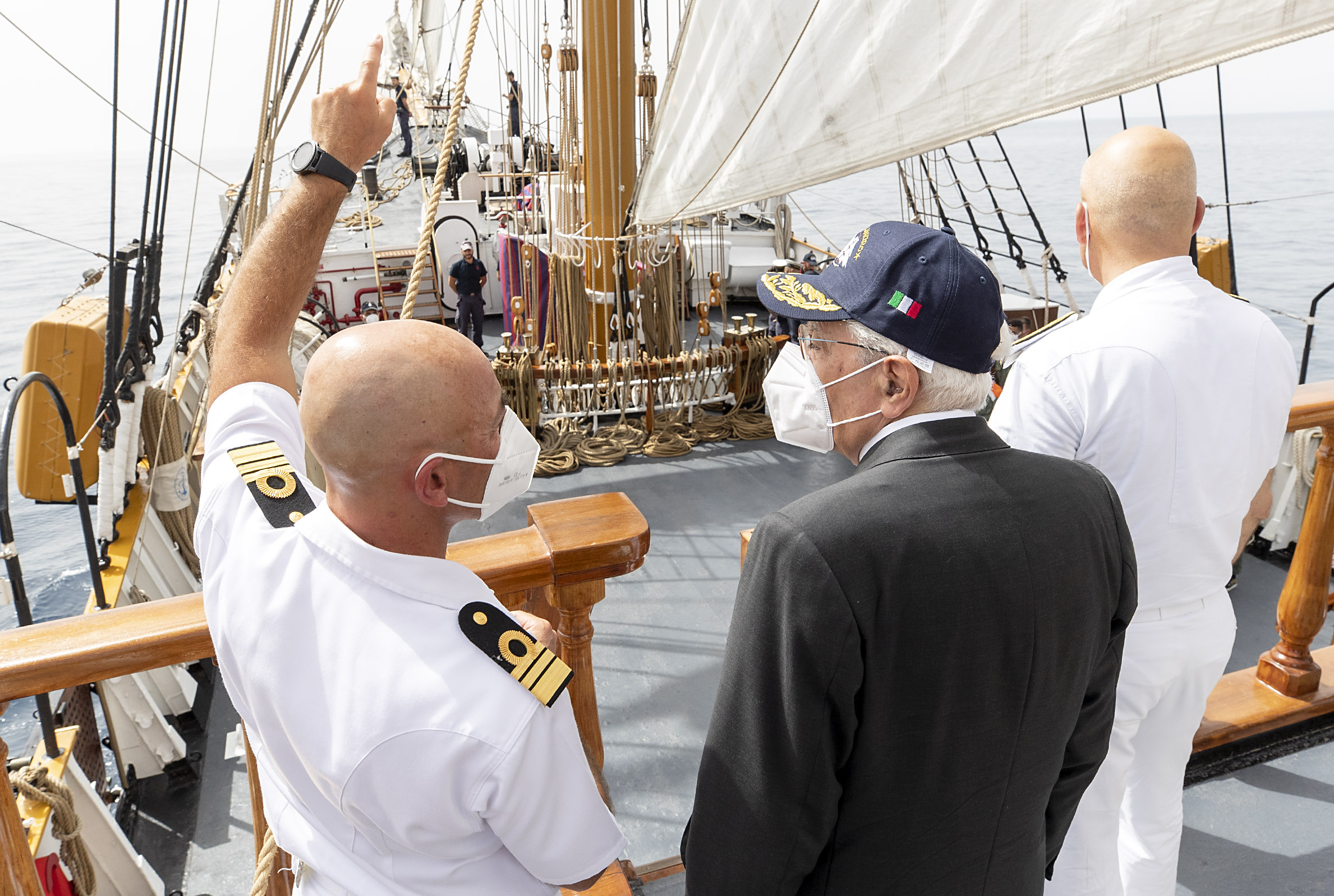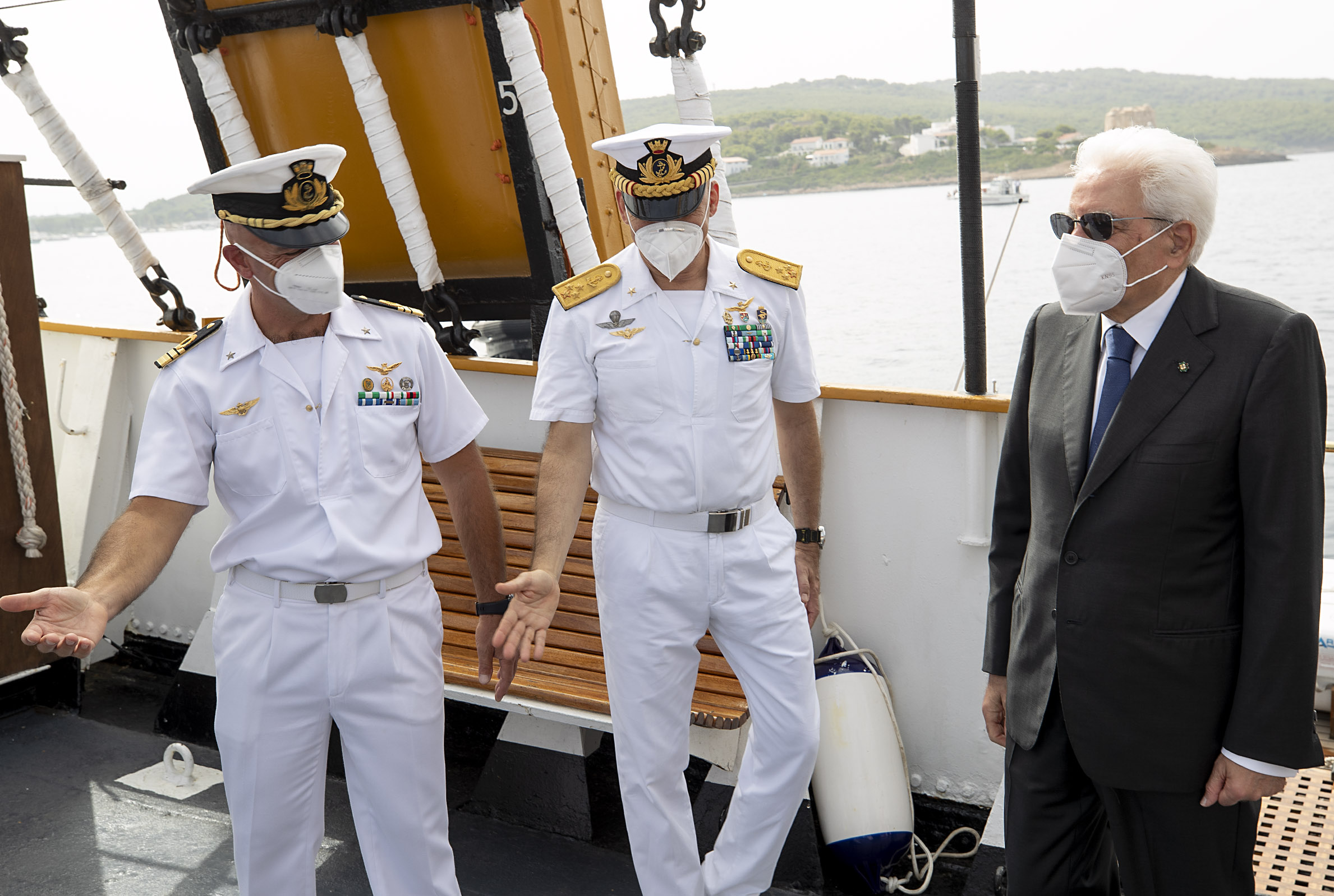 Il Presidente Sergio Mattarella visita la nave scuola Palinuro della Marina militare