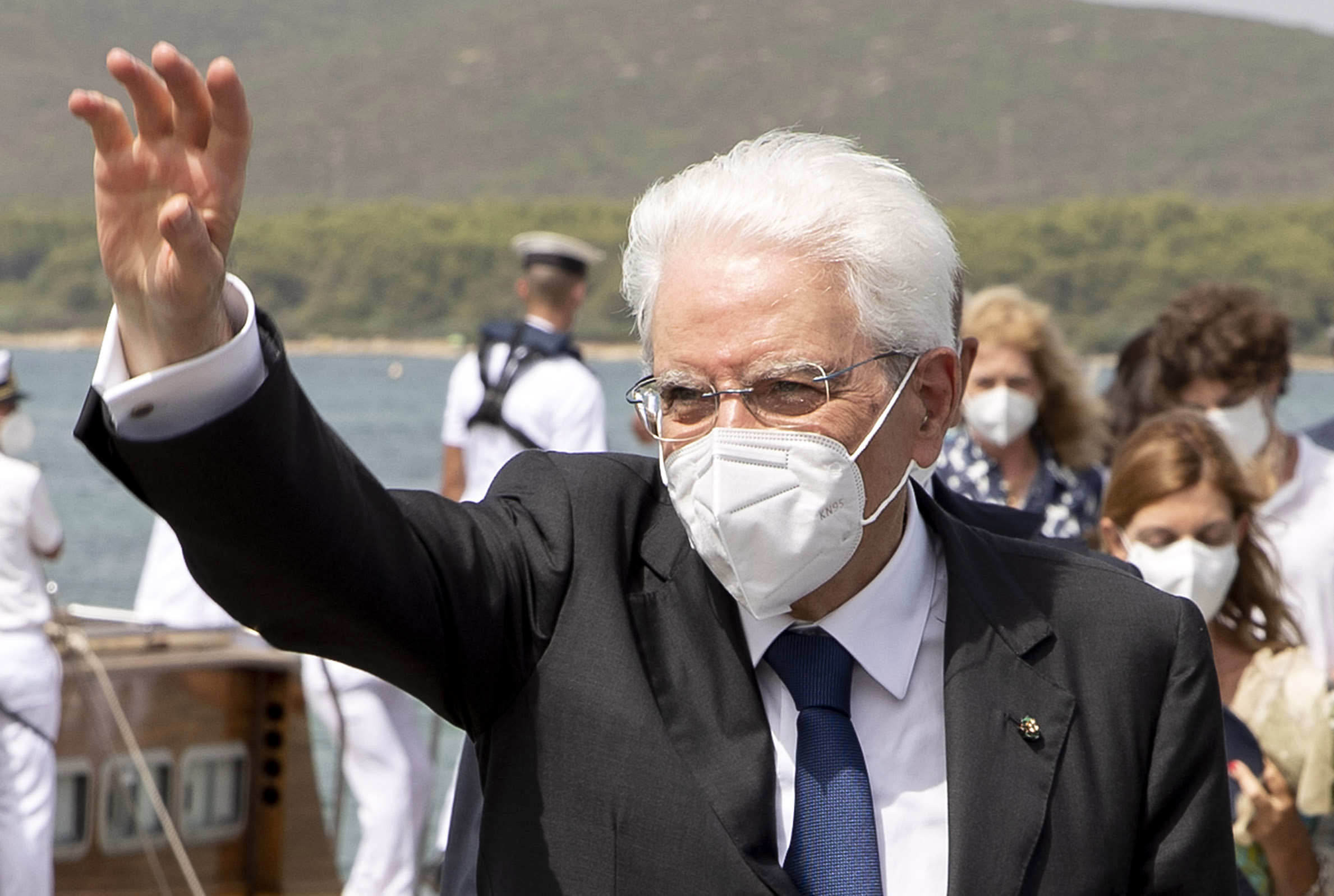 Alghero - Il Presidente della Repubblica Sergio Mattarella al rientro ad Alghero al termine della visita alla nave "Palinuro" della Marina Militare