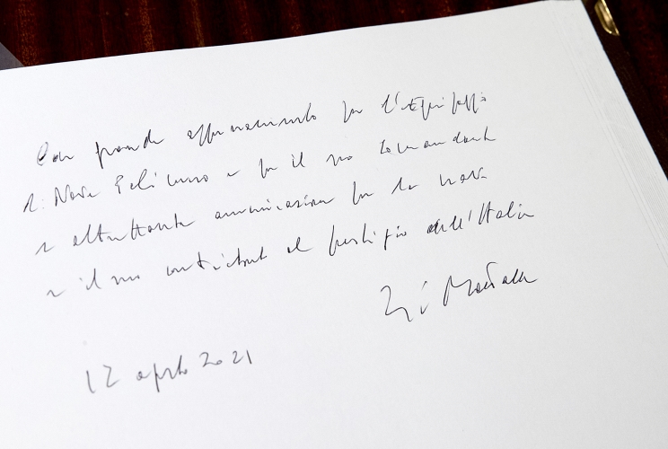 Alghero - L firma del Libro d'Onrore del Presidente della Repubblica Sergio Mattarella in occasione della visita alla nave "Palinuro" della Marina Militare