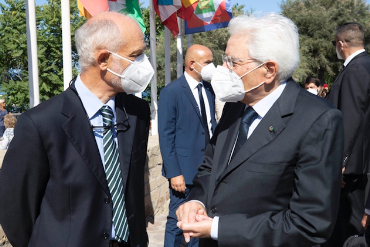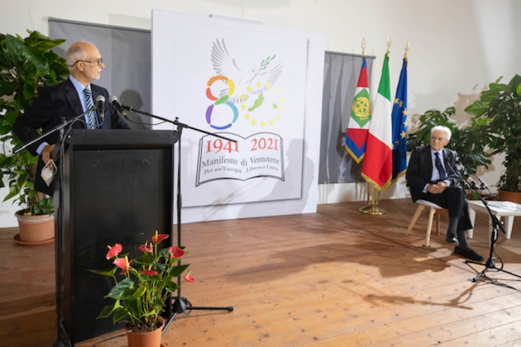 Il Presidente Sergio Mattarella al centro polifunzionale “Umberto Elia Terracini”,con Giorgio Anselmi, Presidente dell’Istituto di Studi Federalisti Altiero Spinelli,in occasione del 40° seminario per la formazione federalista europea,nell’80° anniversario del Manifesto di Ventotene