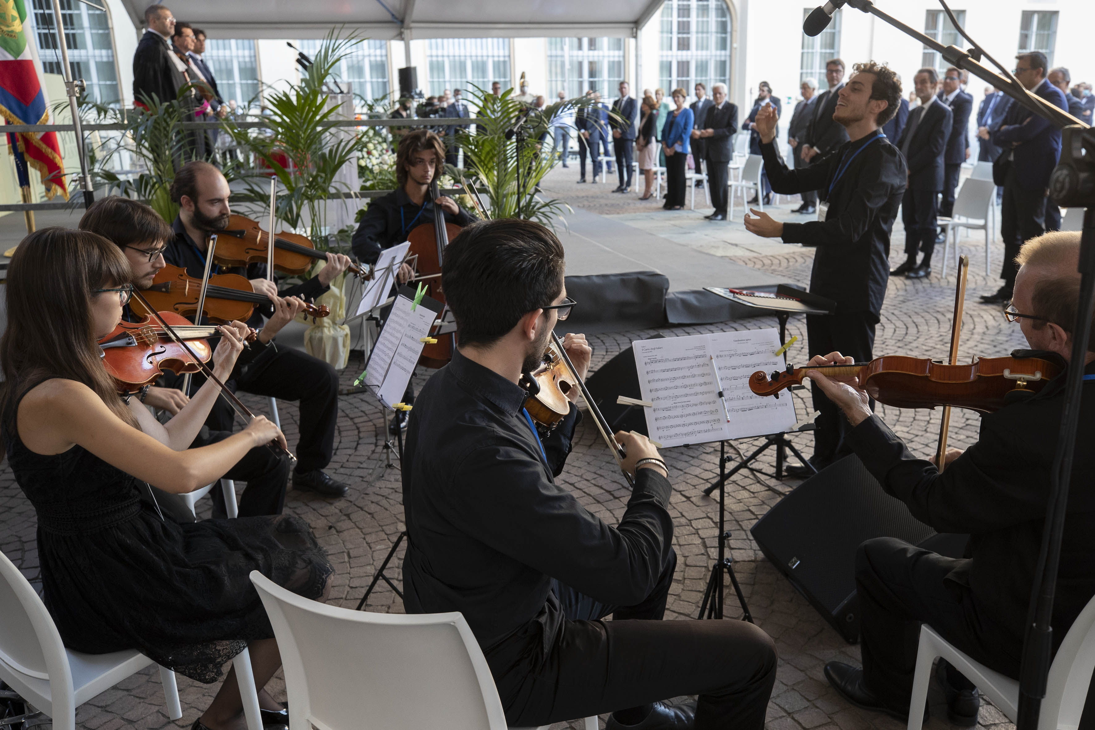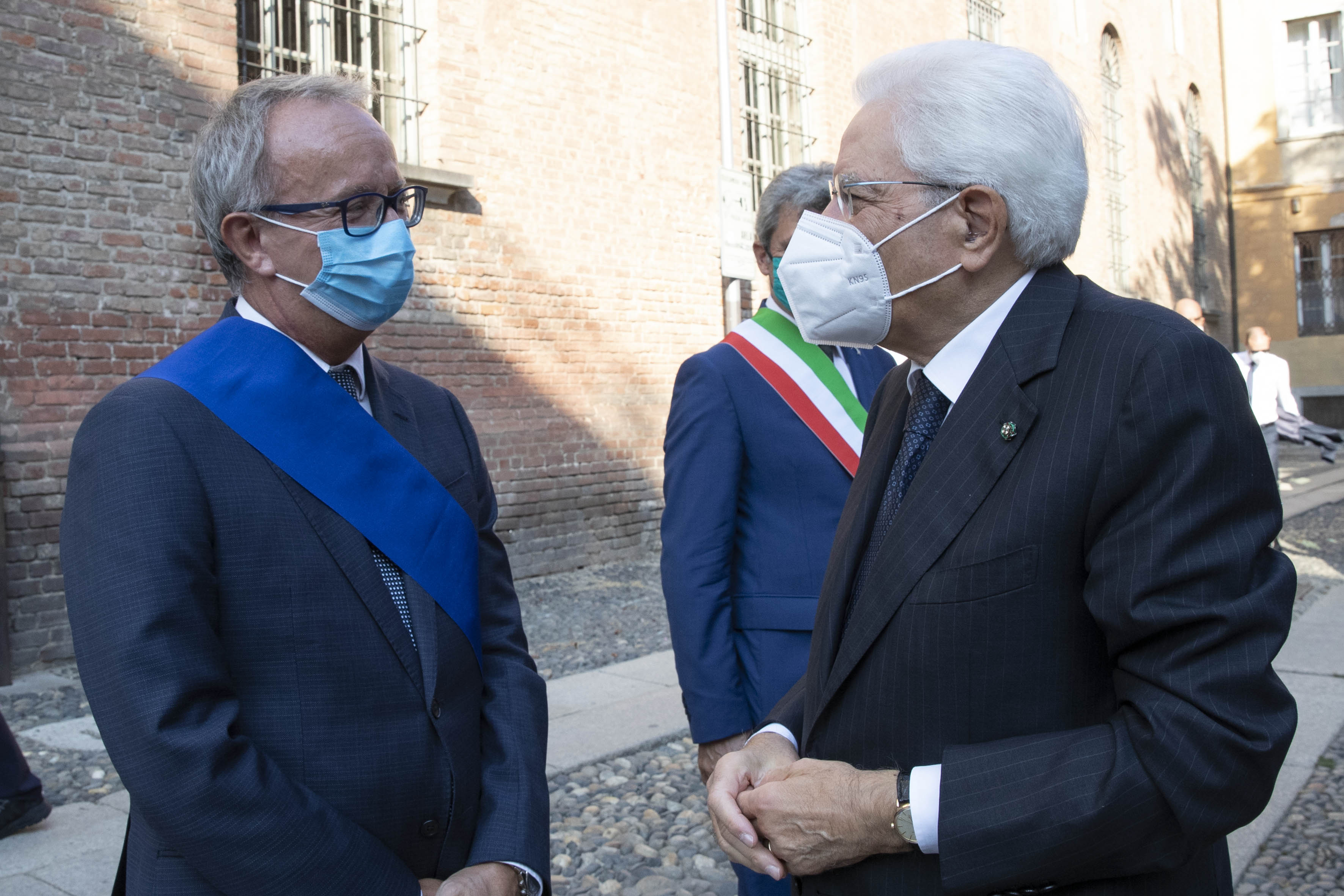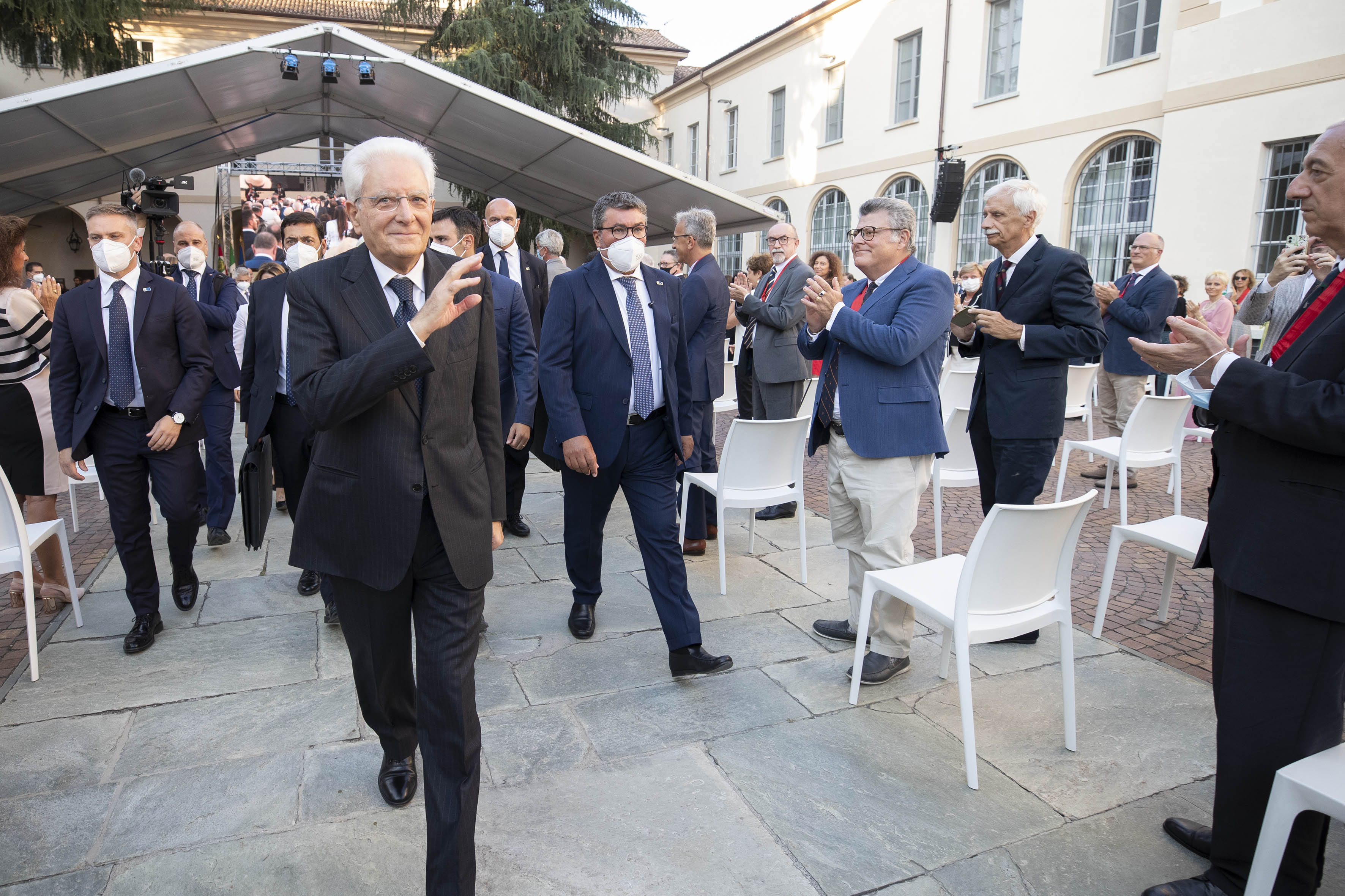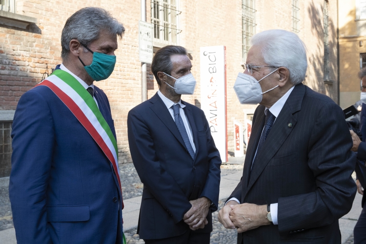 Il Presidente della Repubblica Sergio Mattarella, accolto dal Presidente della Regione Lombardia Attilio Fontana e dal Sindaco di Pavia Mario Fabrizio Fracassi,all'inaugurazione dell’Anno Accademico 2021-2022 dell’Università degli Studi di Pavia, in occasione del 660° anniversario dell’Ateneo