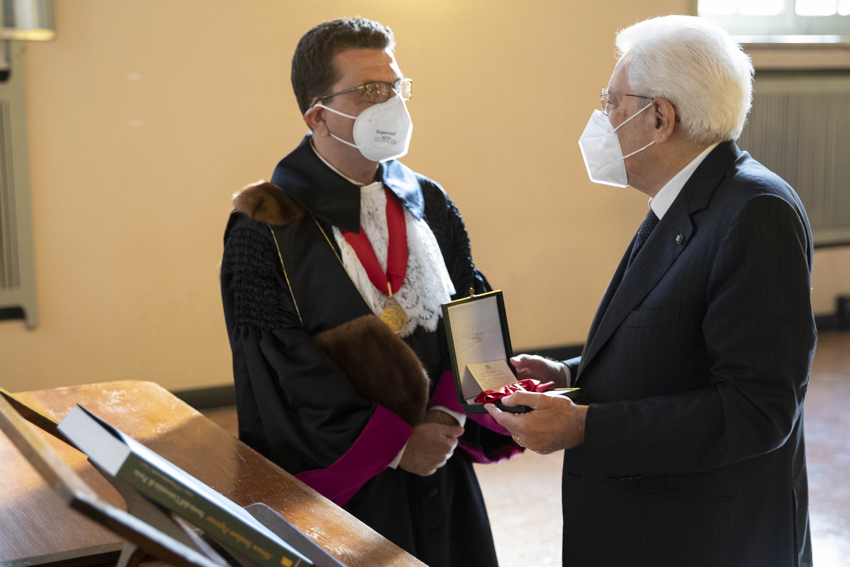 Il Presidente della Repubblica Sergio Mattarella,con Francesco Svelto, Rettore dell’Università degli Studi di Pavia, all'inaugurazione dell’Anno Accademico 2021-2022 dell’Università degli Studi di Pavia, in occasione del 660° anniversario dell’Ateneo
