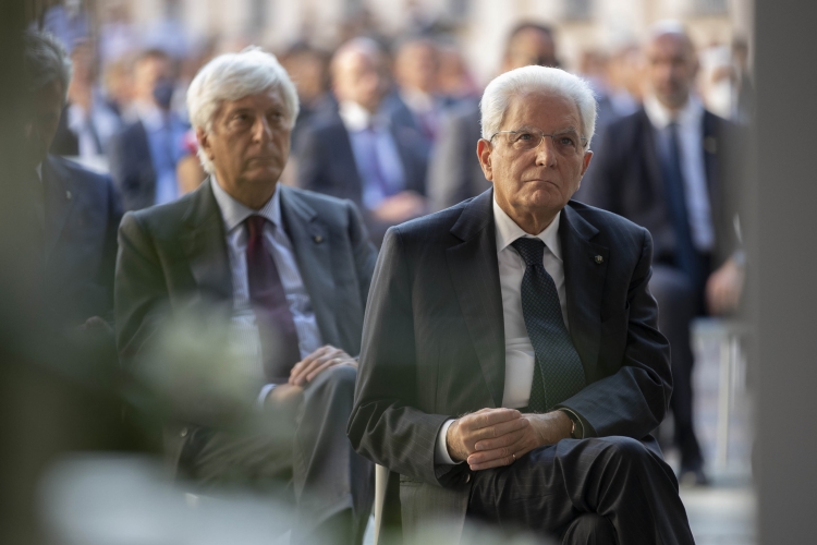 Il Presidente della Repubblica Sergio Mattarella con Francesco Svelto, Rettore dell’Università degli Studi di Pavia,all'inaugurazione dell’Anno Accademico 2021-2022 dell’Università degli Studi di Pavia, in occasione del 660° anniversario dell’Ateneo