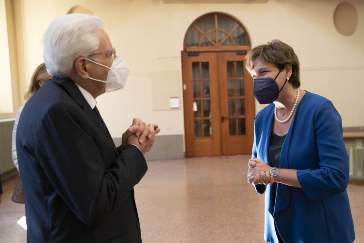 Il Presidente della Repubblica Sergio Mattarella con Maria Cristina Messa, Ministro dell’Università e della Ricerca, all'inaugurazione dell’Anno Accademico 2021-2022 dell’Università degli Studi di Pavia, in occasione del 660° anniversario dell’Ateneo