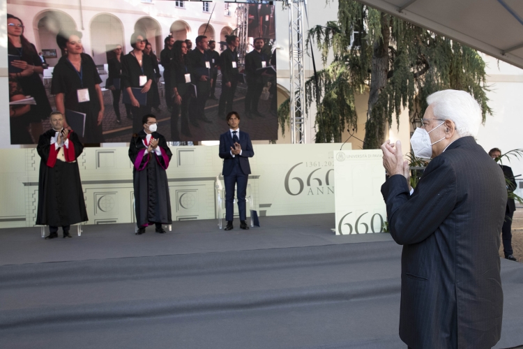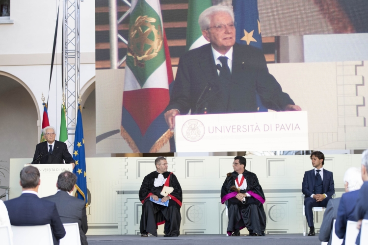 Il Presidente della Repubblica Sergio Mattarella all'inaugurazione dell’Anno Accademico 2021-2022 dell’Università degli Studi di Pavia, in occasione del 660° anniversario dell’Ateneo