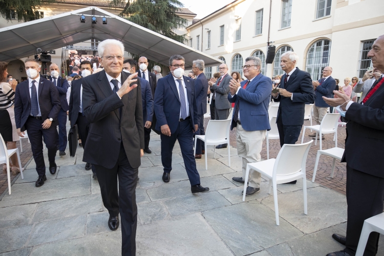 Il Presidente della Repubblica Sergio Mattarella al termine della cerimonia di inaugurazione dell’Anno Accademico 2021-2022 dell’Università degli Studi di Pavia, in occasione del 660° anniversario dell’Ateneo