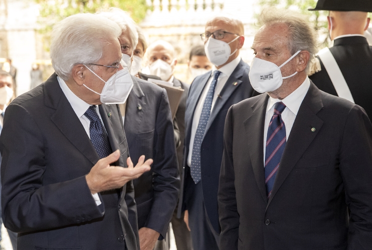 Il Presidente Sergio Mattarella accolto dal Presidente della Corte Costituzionale Giancarlo Coraggio, al suo arrivo al Palazzo della Consulta, in occasione del concerto promosso dalla Corte costituzionale nell’ambito della “Giornata mondiale dell’alfabetizzazione e della cultura” a conclusione del ciclo di Podcast “incontri”