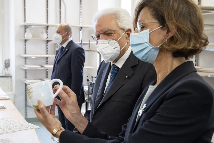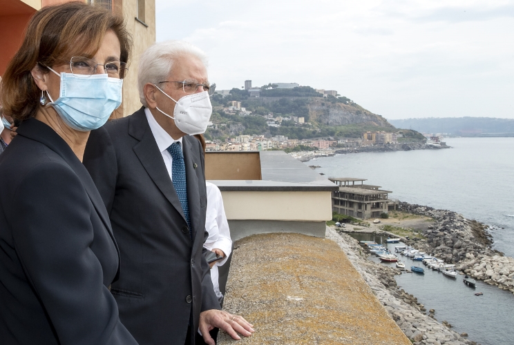 Pozzuoli - Il Presidente della Repubblica Sergio Mattarella e il Ministro della Giustizia Marta Cartabia, nel corso della visita al rione Terra di Pozzuoli