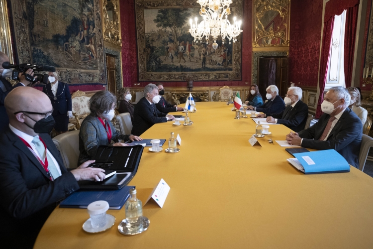 Il Presidente della Repubblica Sergio Mattarella con il Presidente della Repubblica di Finlandia, Sauli Niinistö, in occasione dei colloqui con le delegazioni ufficiali
