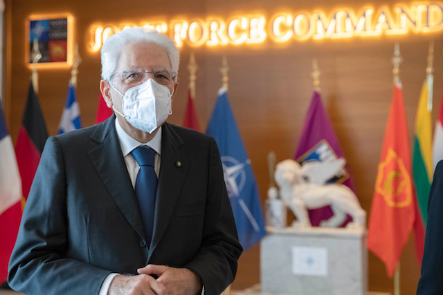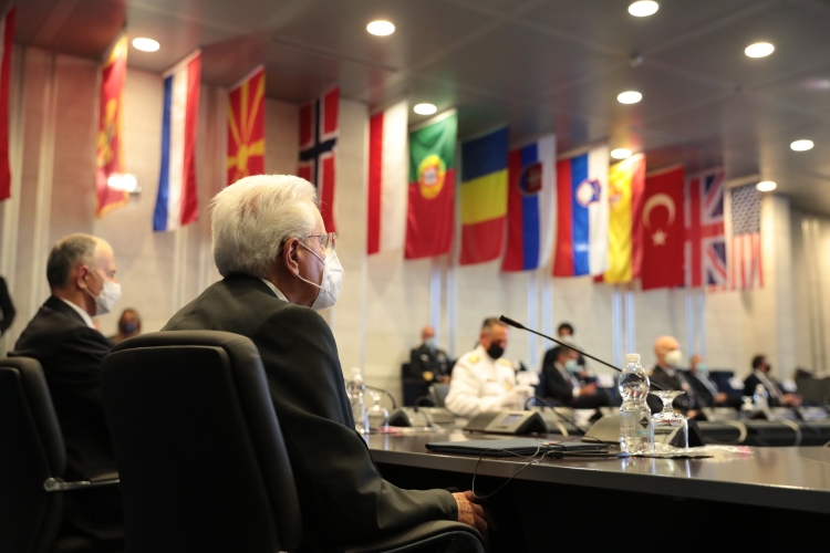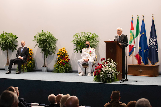 Il Presidente della Repubblica Sergio Mattarella alla celebrazione del 70° anniversario della NATO in Italia