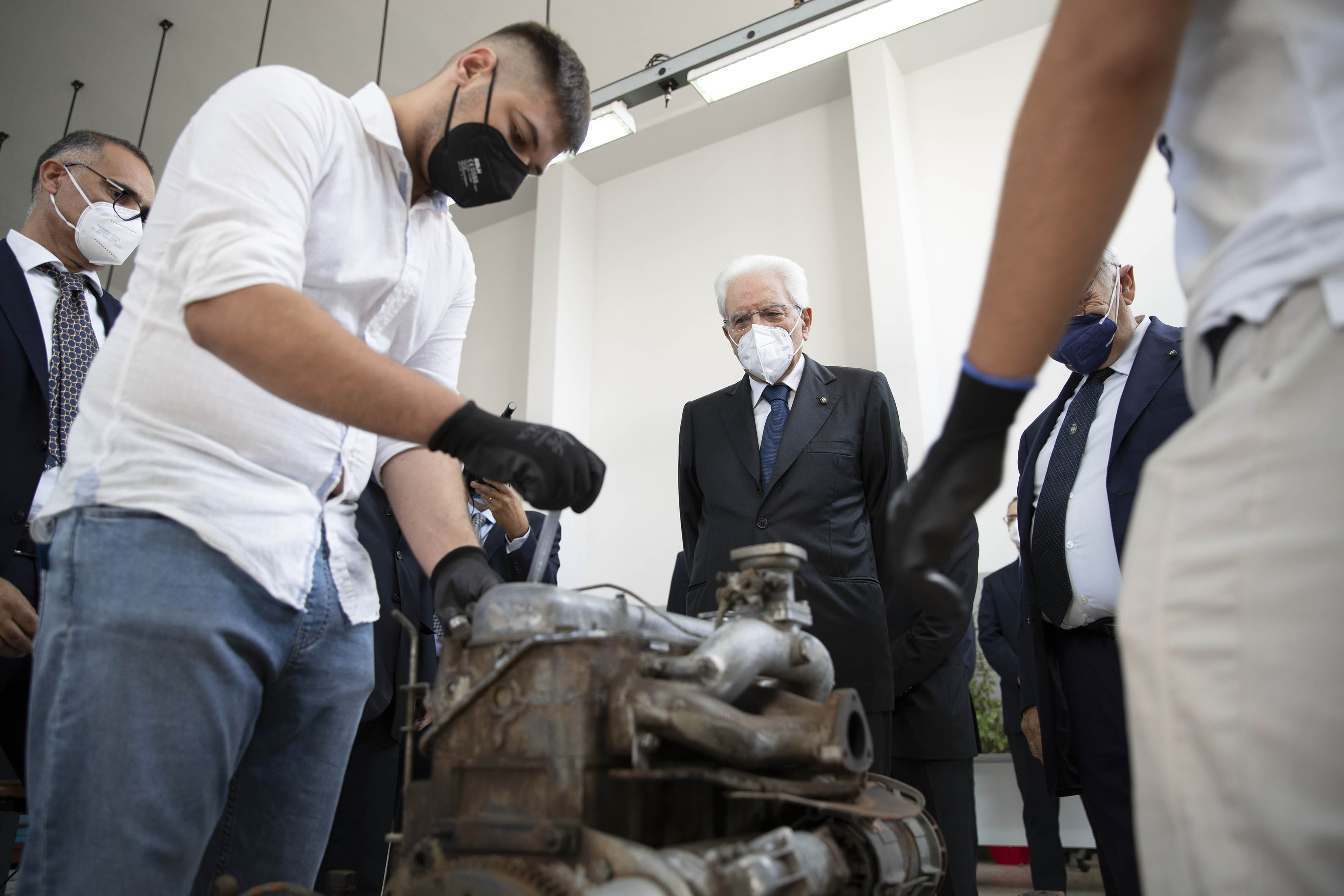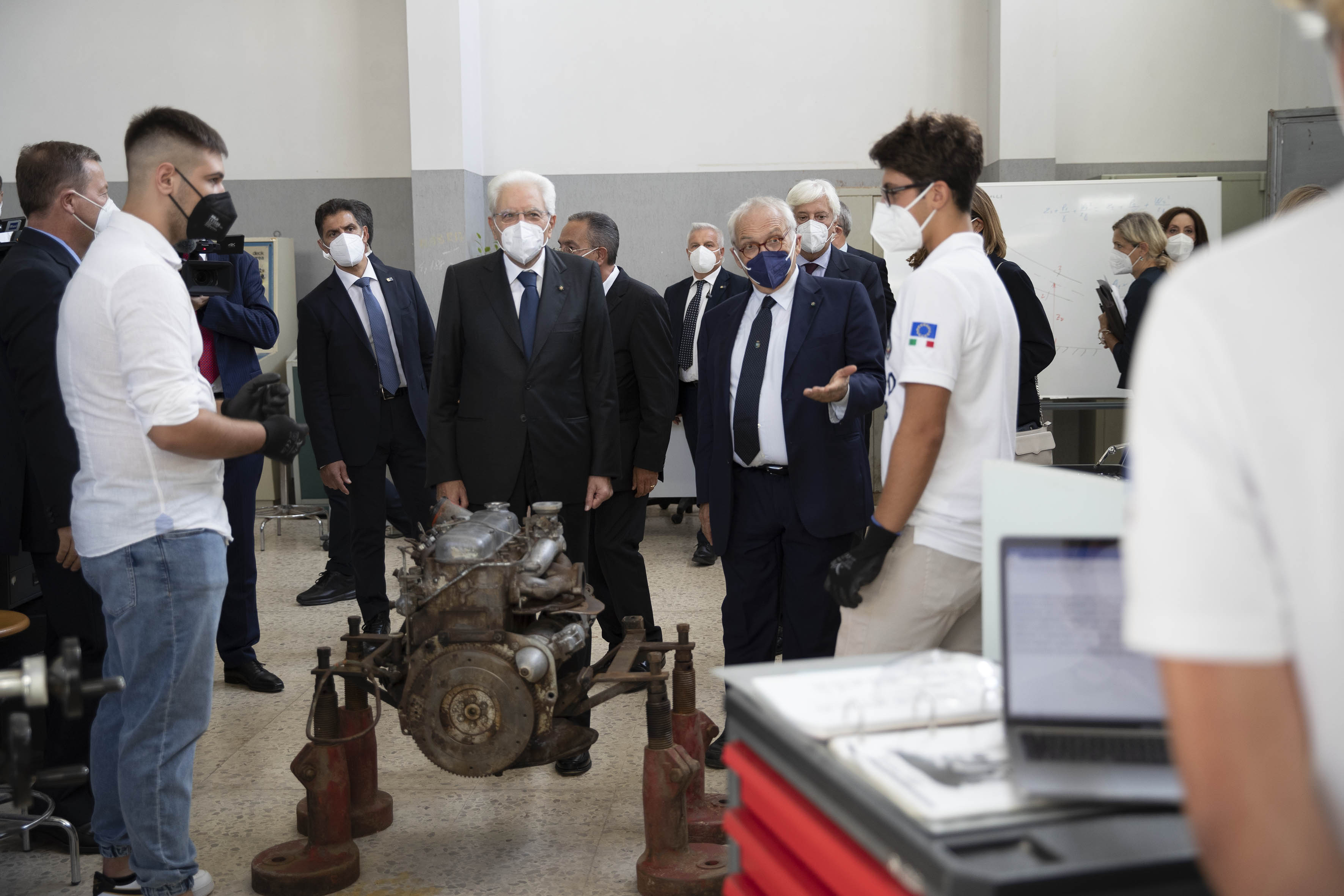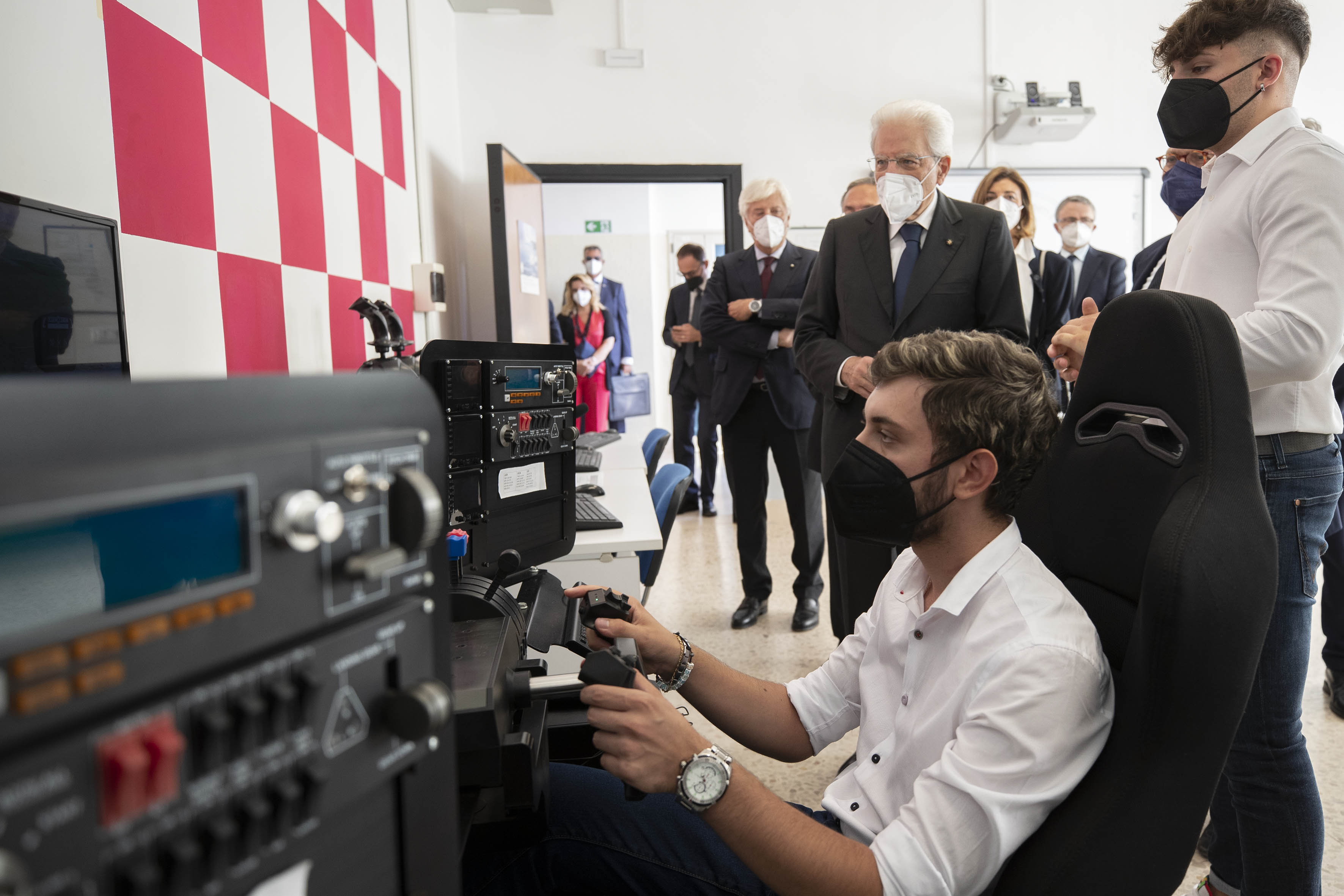 Il Presidente della Repubblica Sergio Mattarella visita il laboratorio di aeronautica con i simulatori di volo dell’Istituto OmniComprensivo Tecnico Nautico e Aeronautico, Logistica e Trasporti di Pizzo Calabro.