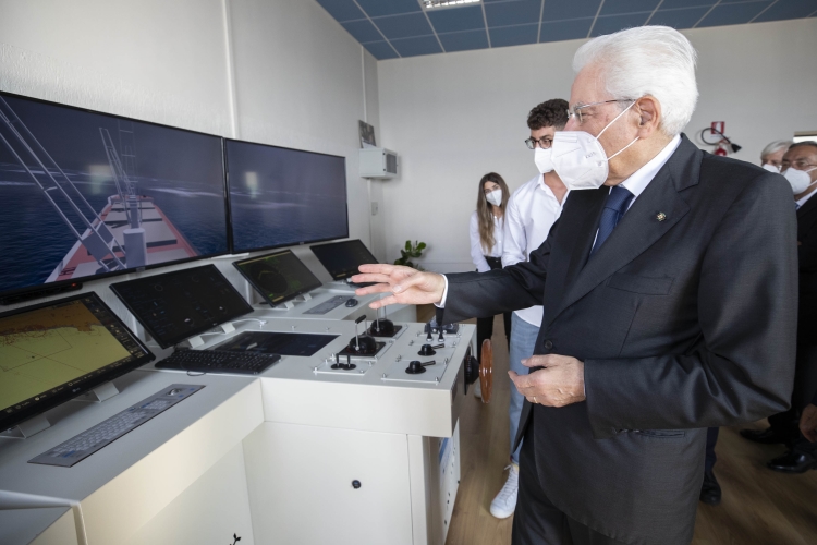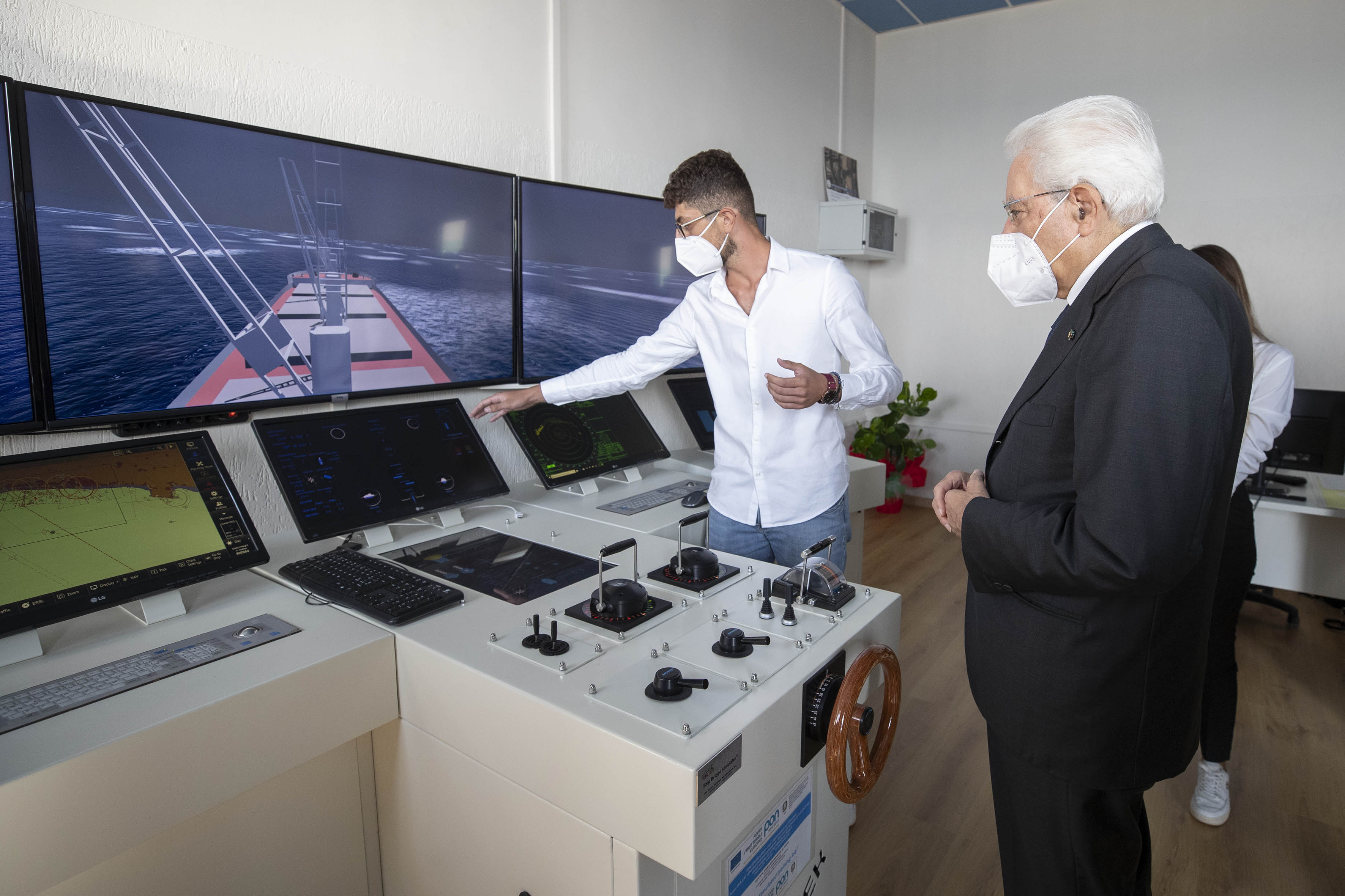 Il Presidente della Repubblica Sergio Mattarella visita il laboratorio di navigazione con simulatori di plancia nave,dell’Istituto OmniComprensivo Tecnico Nautico e Aeronautico, Logistica e Trasporti di Pizzo Calabro
