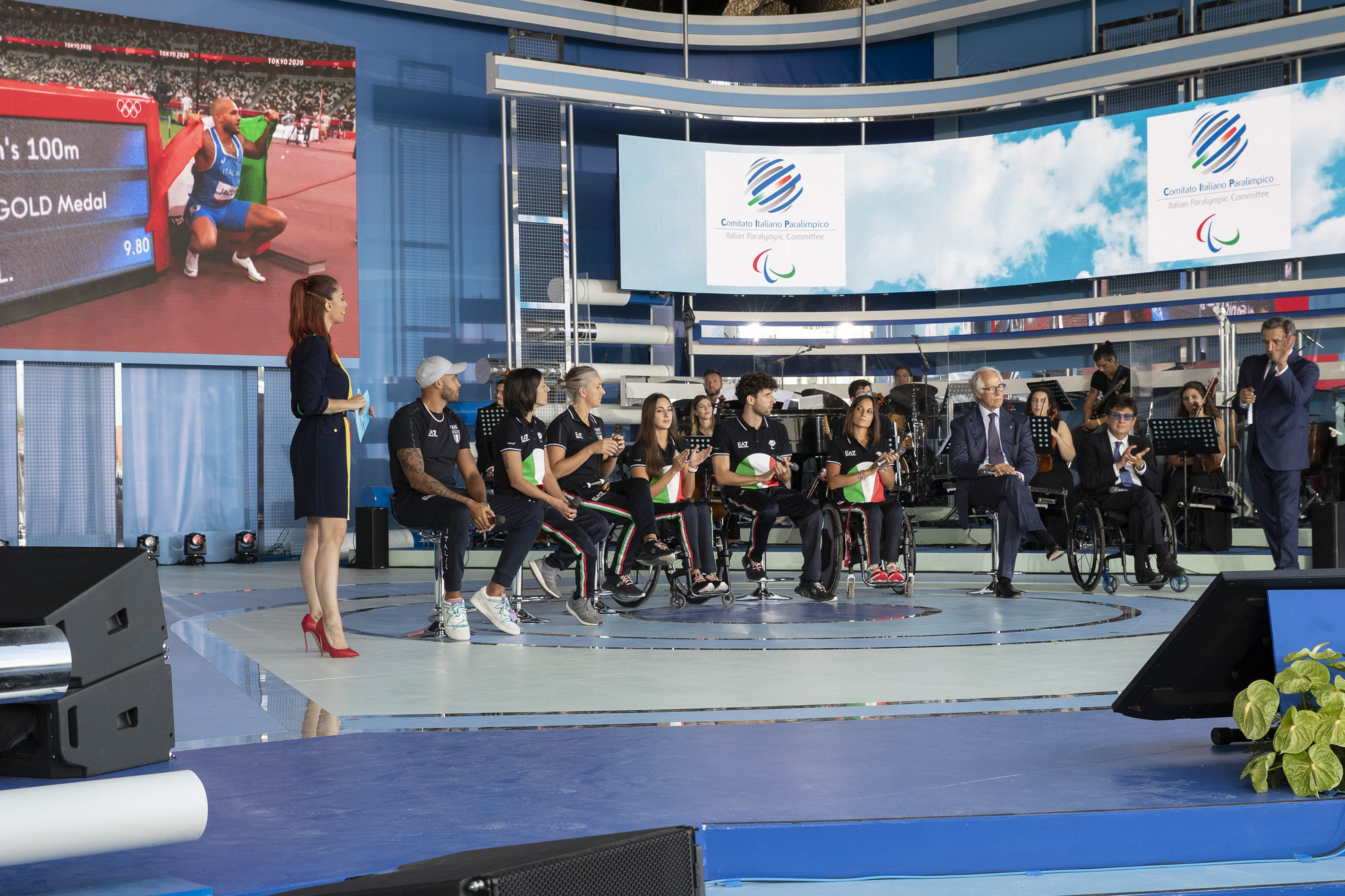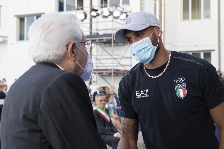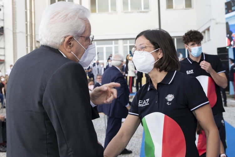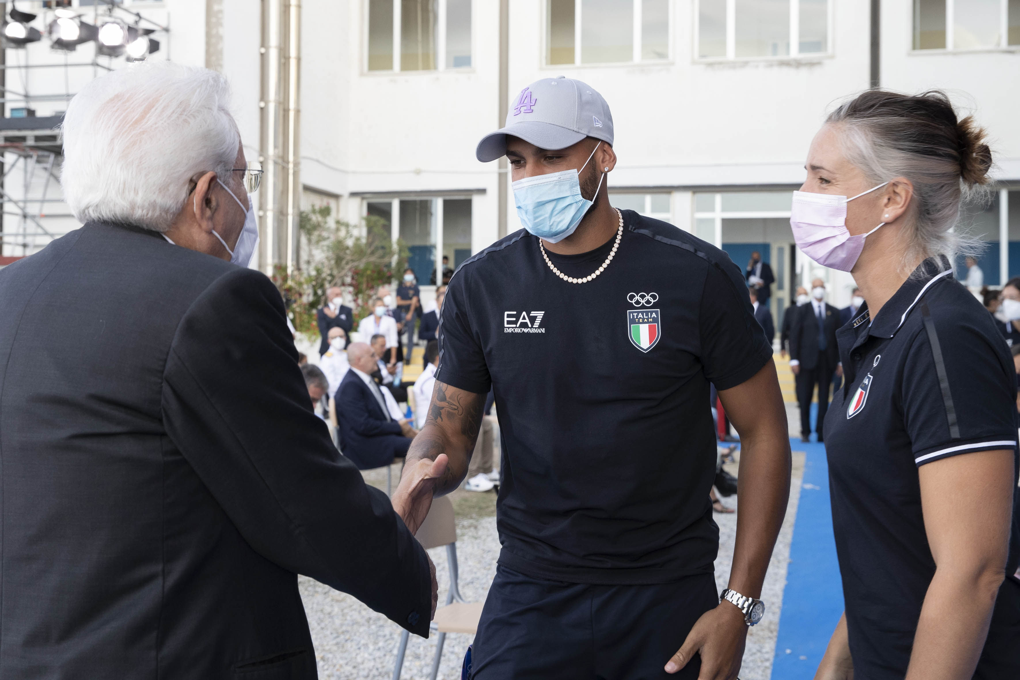 Il Presidente della Repubblica Sergio Mattarella saluta una rappresentanza di atleti delle recenti olimpiadi in occasione della cerimonia di inaugurazione dell’anno scolastico 2021/2022