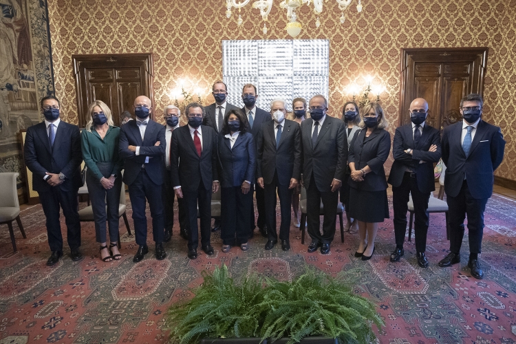 Il Presidente della Repubblica Sergio Mattarella con Luigi Abete, Presidente della Luiss Business School, e una delegazione di esponenti del progetto formativo "Global Family Business Management"