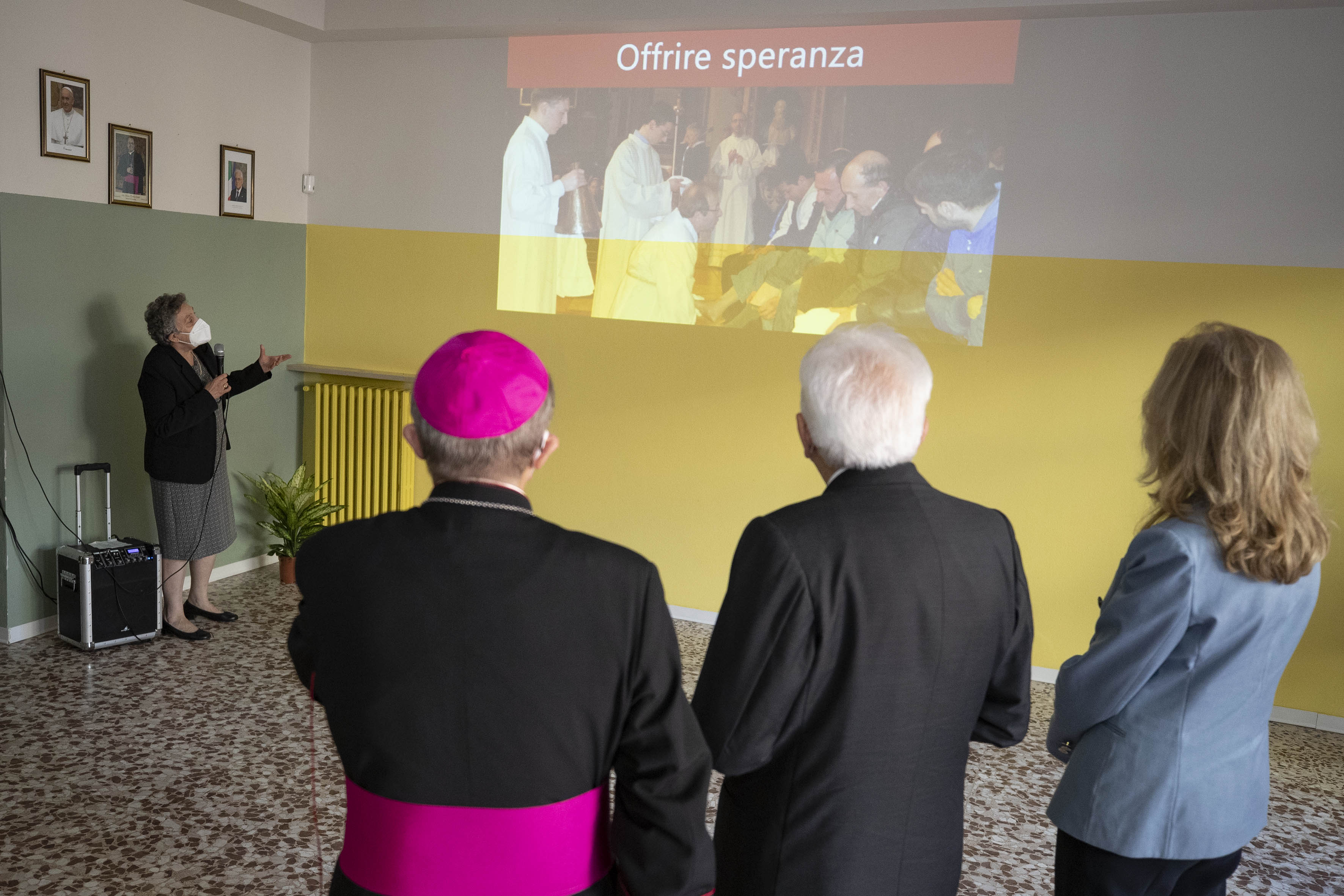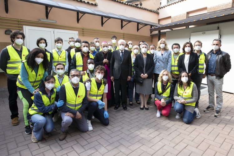 Il Presidente della Repubblica Sergio Mattarella e la Sig.ra Laura, alla mensa della Caritas, con Mons. Enrico Solmi,Vescovo della diocesi di Parma