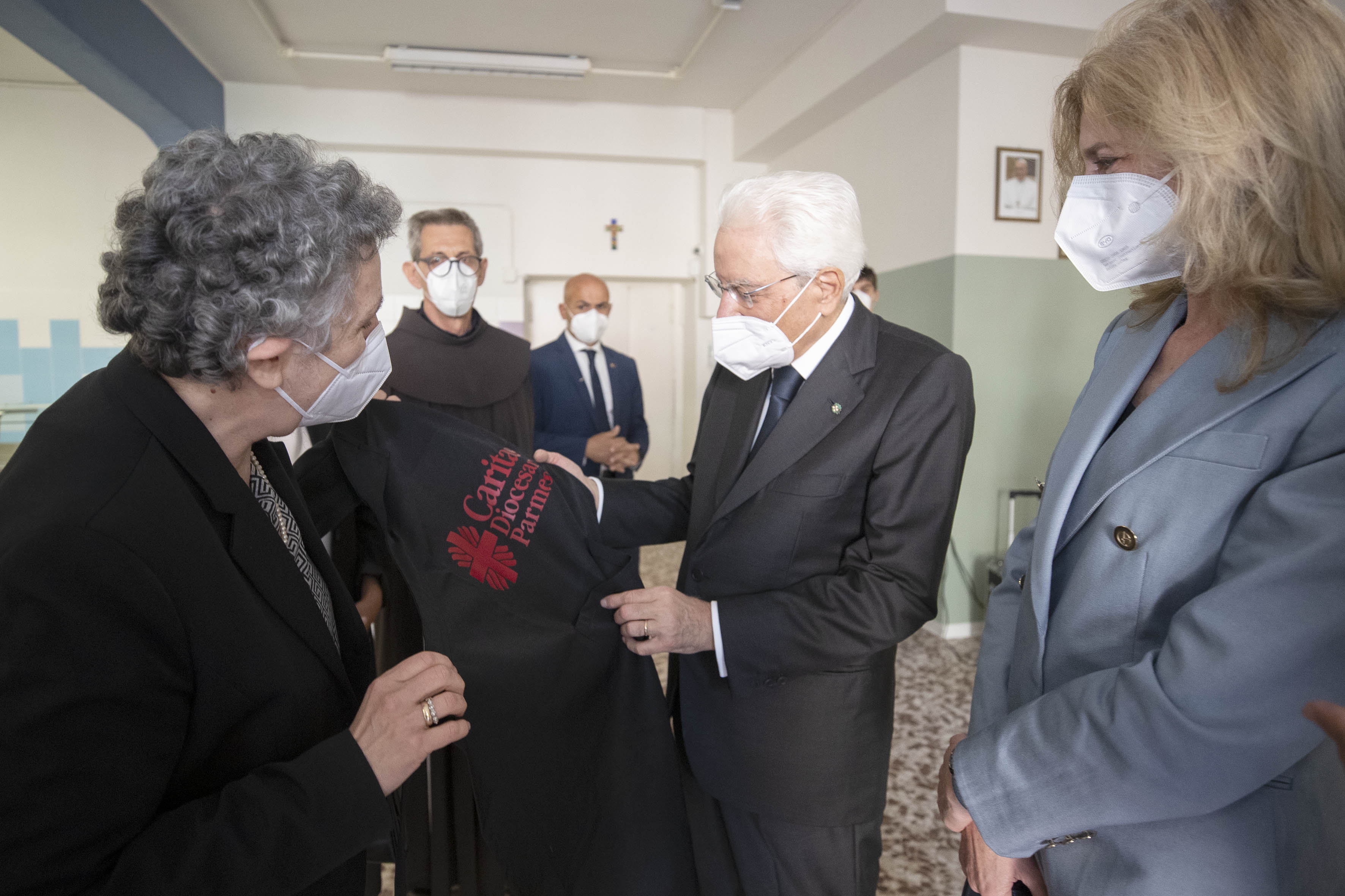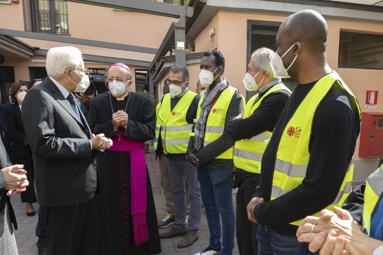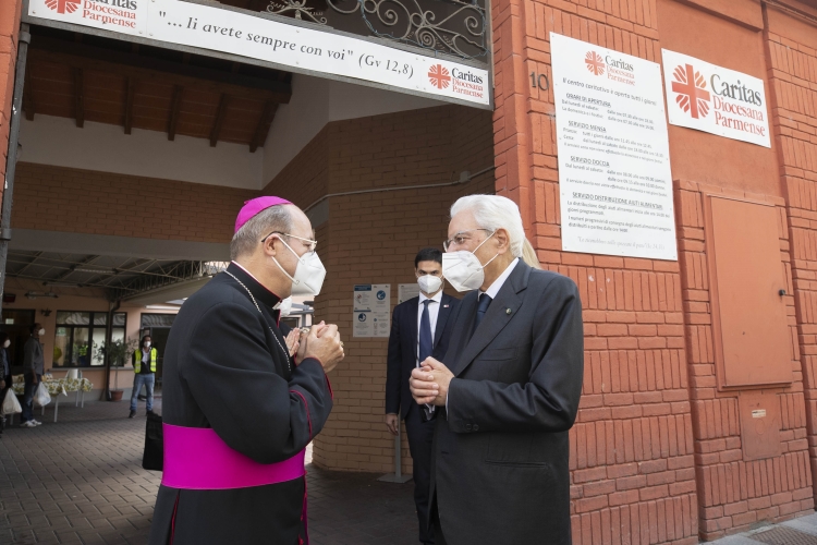 Il Presidente della Repubblica Sergio Mattarella alla mensa della Caritas di Parma