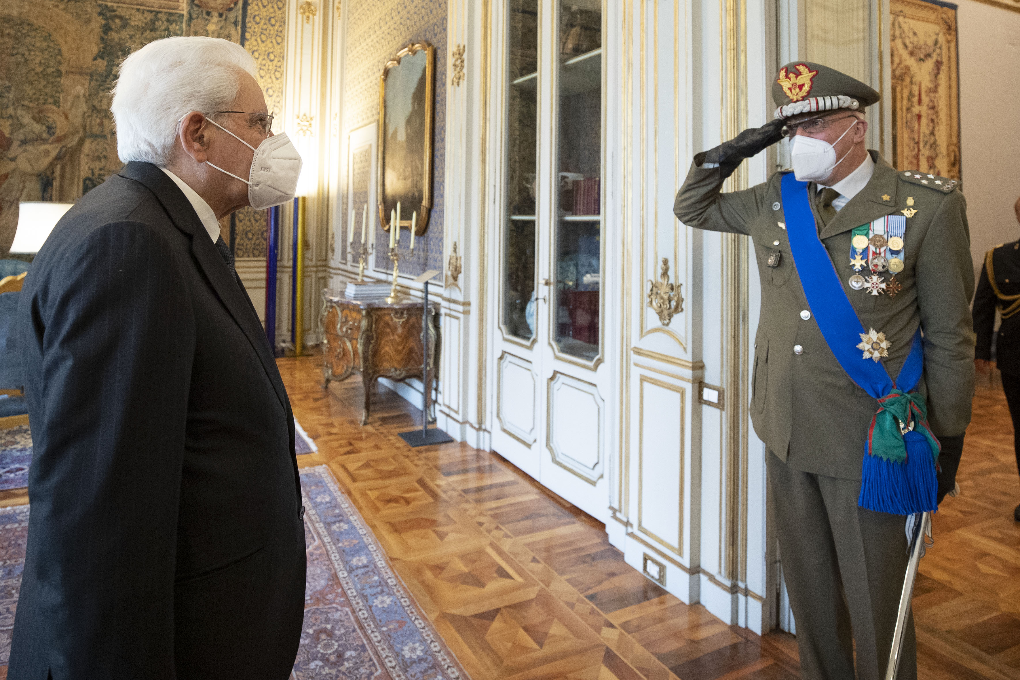 Il Presidente della Repubblica Sergio Mattarella riceve il Gen. C.A. Nicolò Falsaperna Segretario Generale della Difesa e Direttore Nazionale degli Armamenti uscente