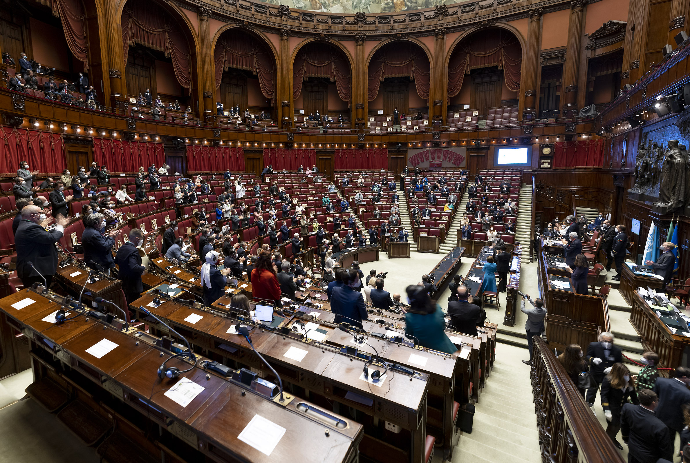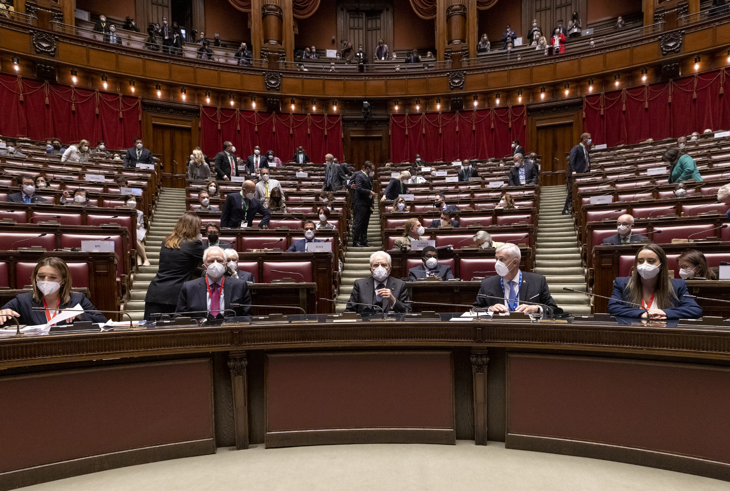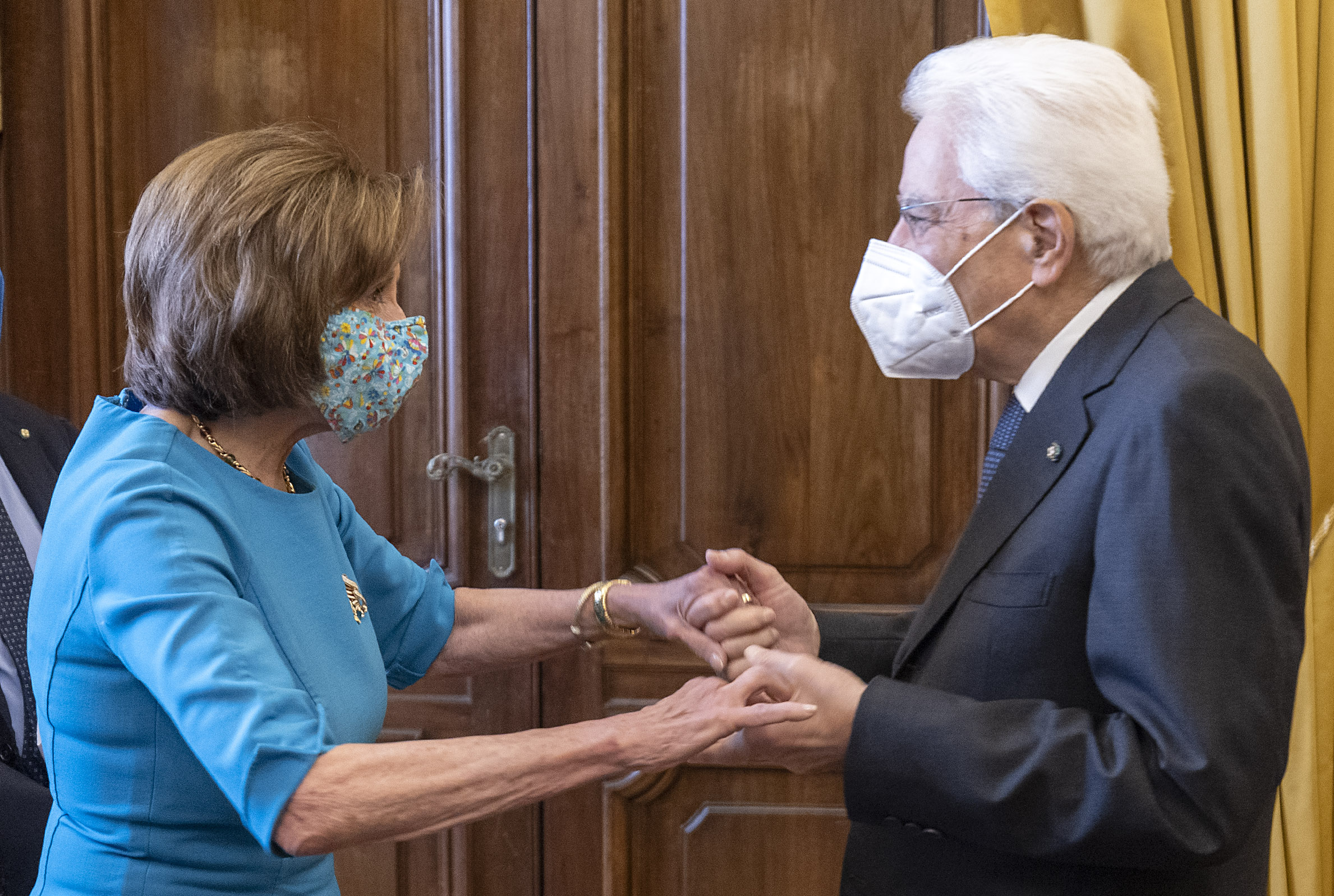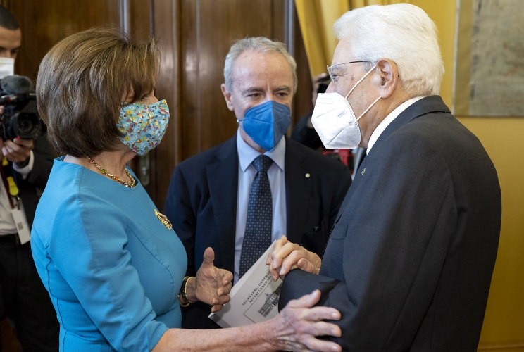 Il Presidente Sergio Mattarella con Nancy Pelosi, Speaker della Camera dei Rappresentanti degli Stati Uniti d’America, in occasione della cerimonia di apertura della riunione Parlamentare Pre-COP26