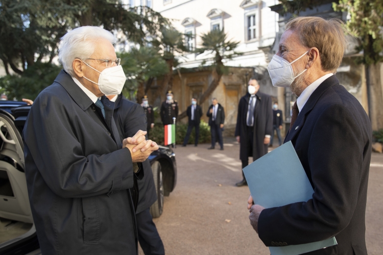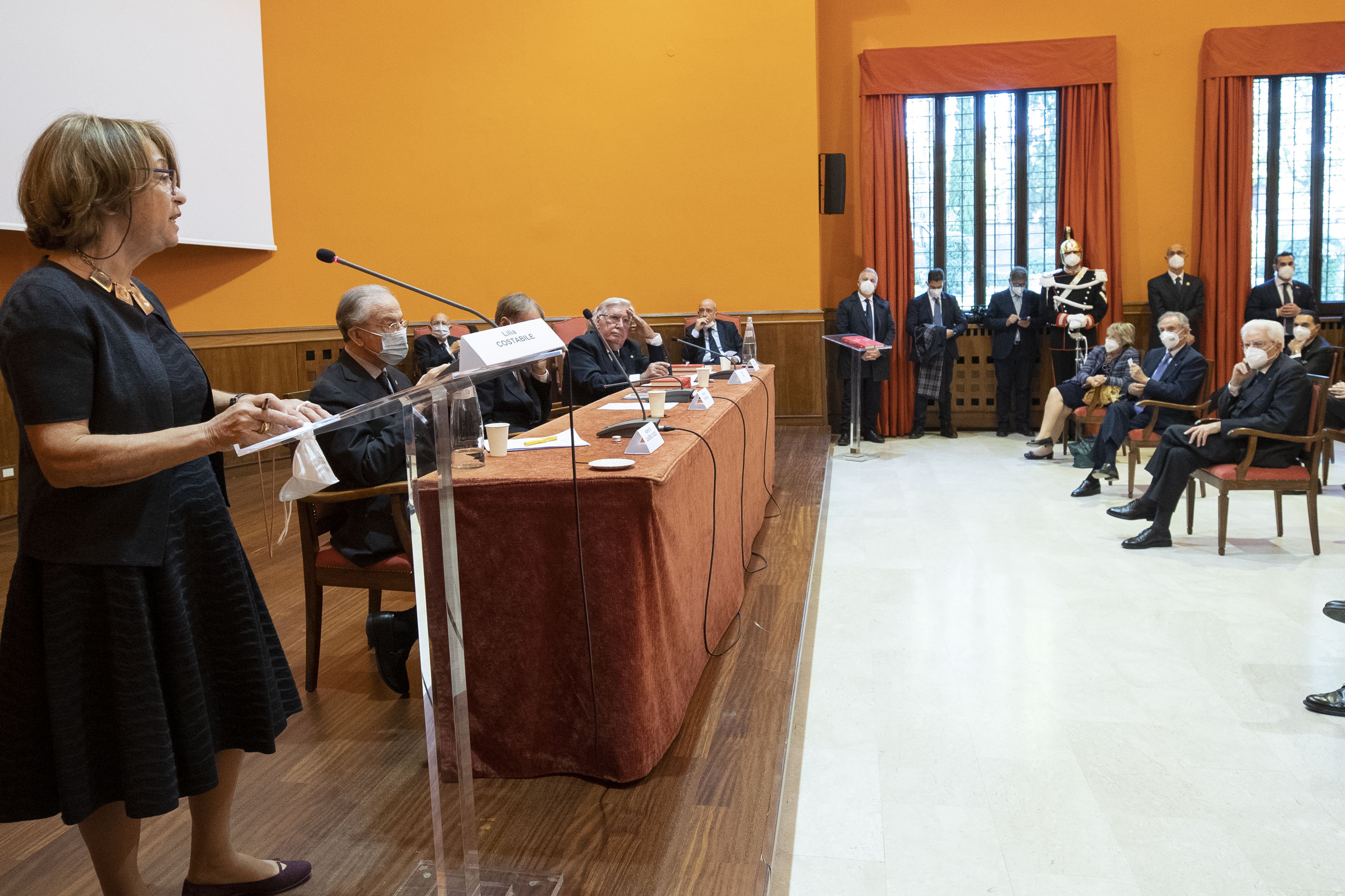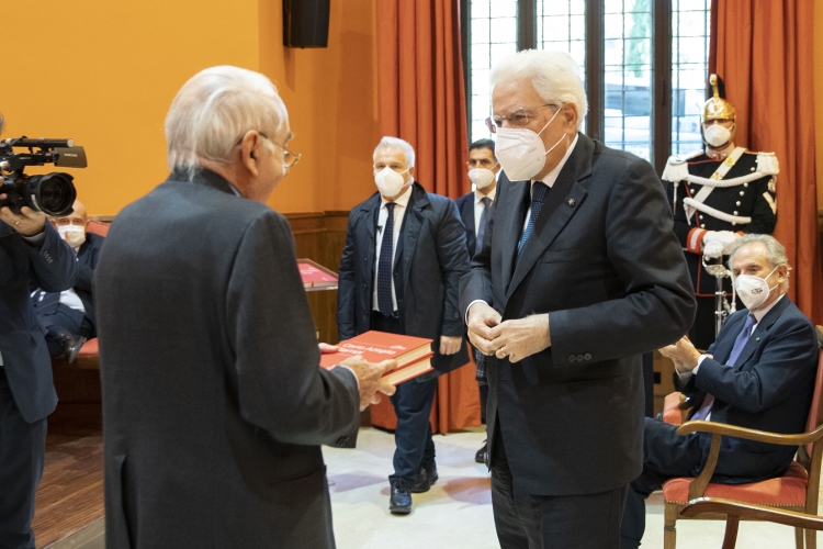 Il Presidente della Repubblica Sergio Mattarella con Roberto Antonelli, Presidente dell’Accademia nazionale dei Lincei,in occasione della cerimonia di presentazione degli Studi in onore di Carlo Azeglio Ciampi elaborati in occasione dei cento anni dalla nascita (1920-2020)