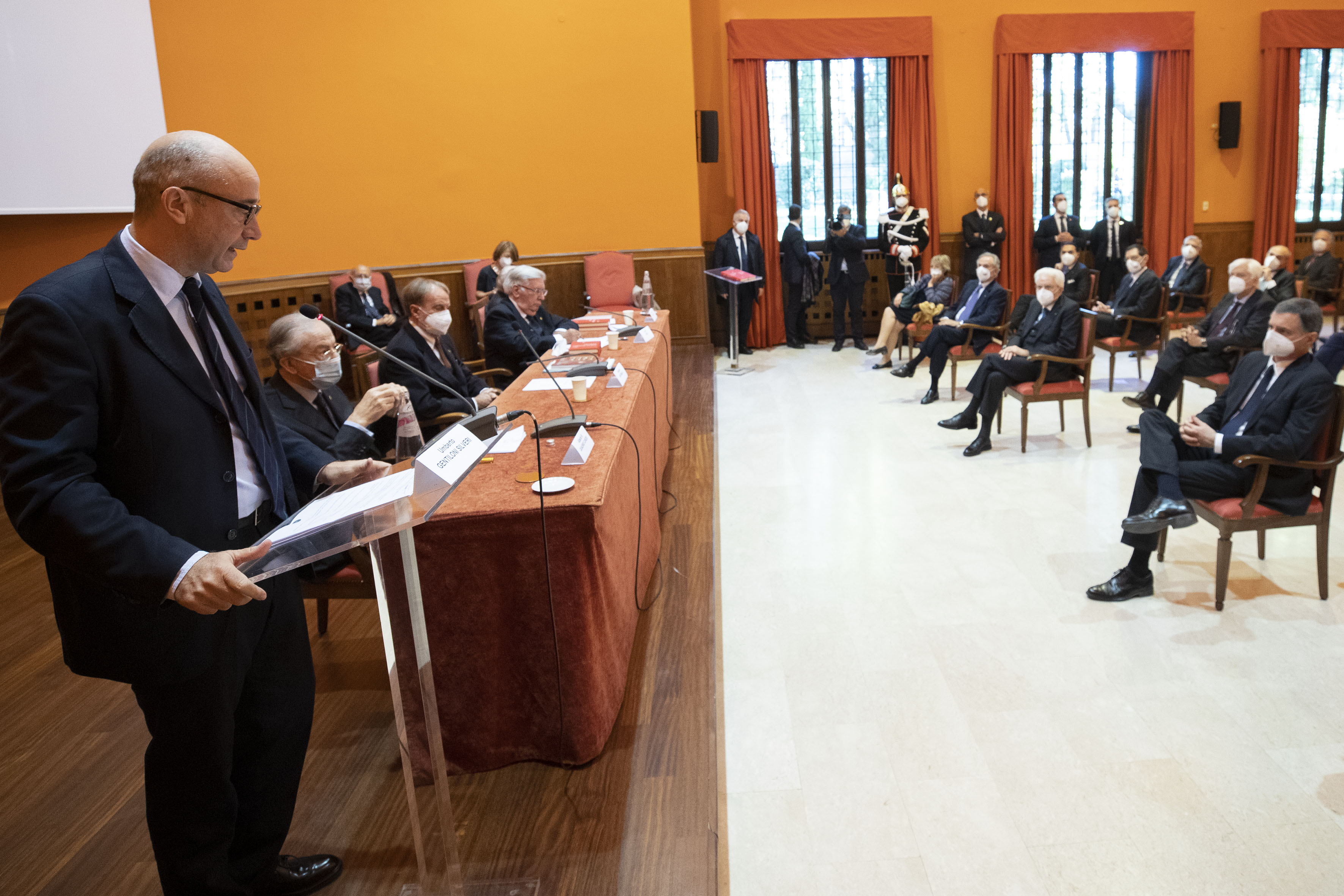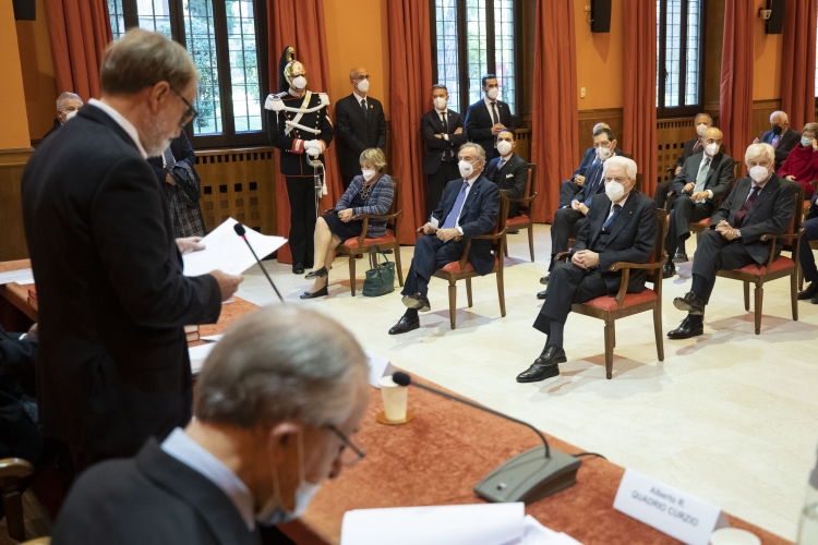 Il Presidente della Repubblica Sergio Mattarella in occasione della cerimonia di presentazione degli Studi in onore di Carlo Azeglio Ciampi elaborati in occasione dei cento anni dalla nascita (1920-2020)