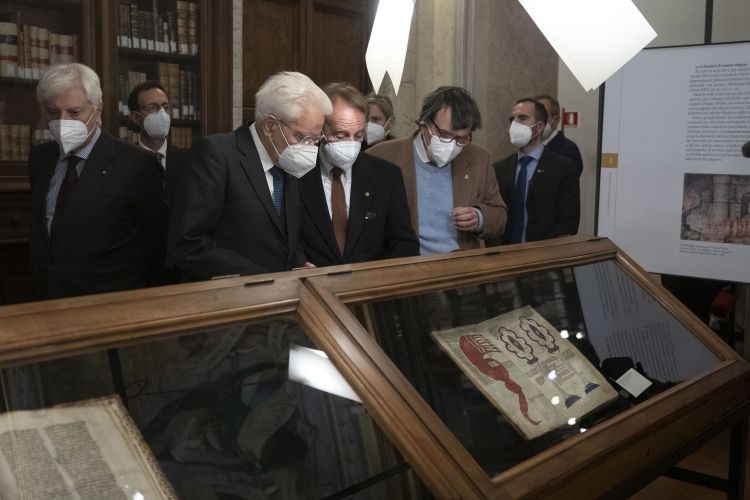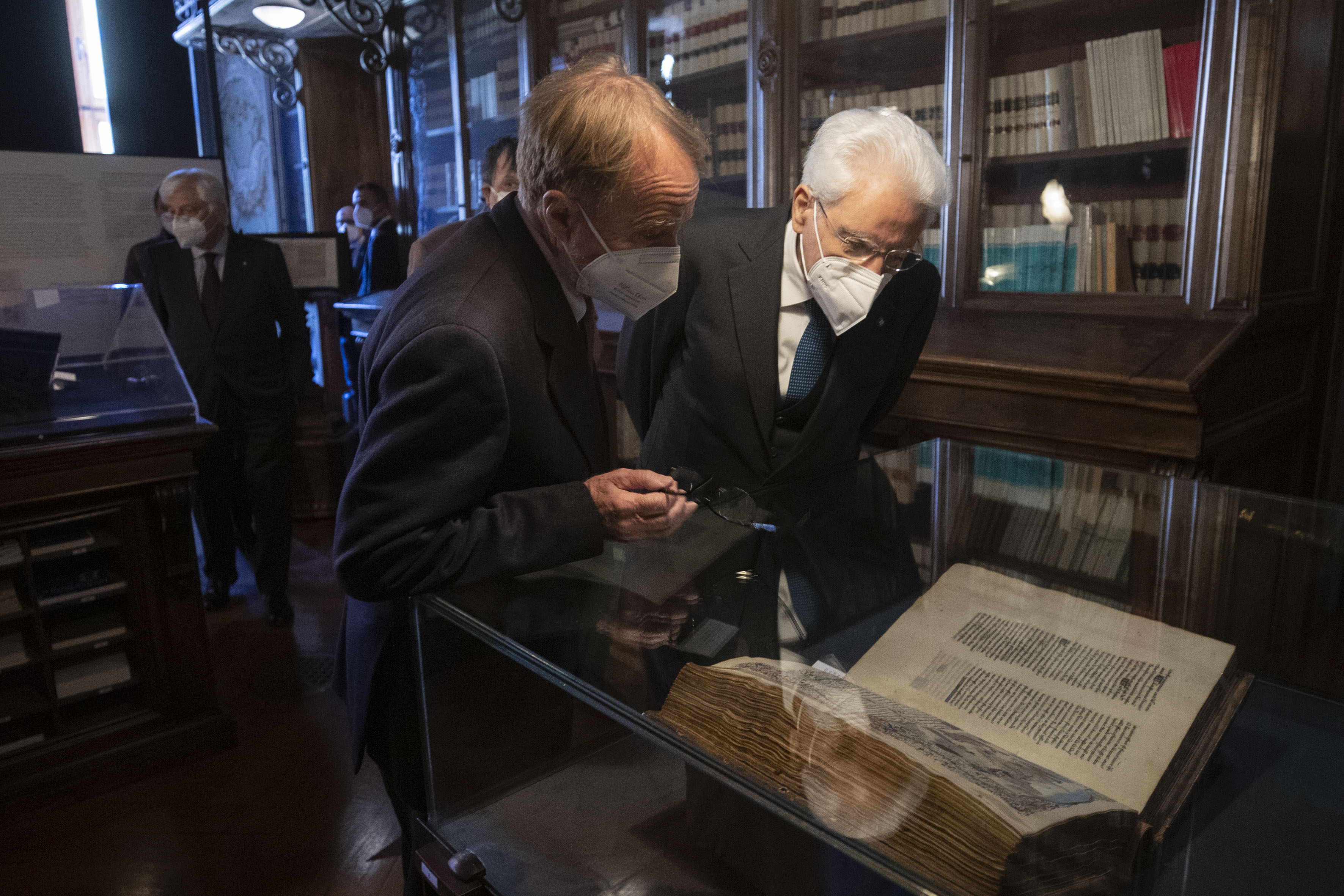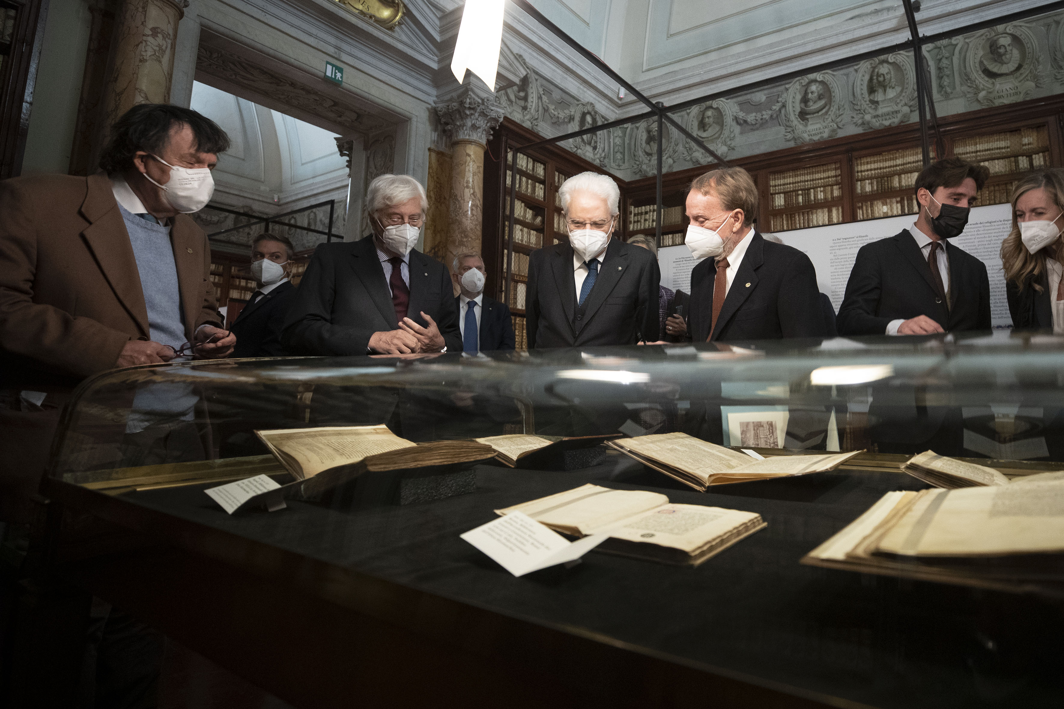 Il Presidente della Repubblica Sergio Mattarella visita la mostra dal titolo La “Biblioteca” di Dante, allestita all’interno della biblioteca dell’Accademia nazionale dei Lincei e Corsiniana
