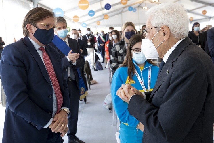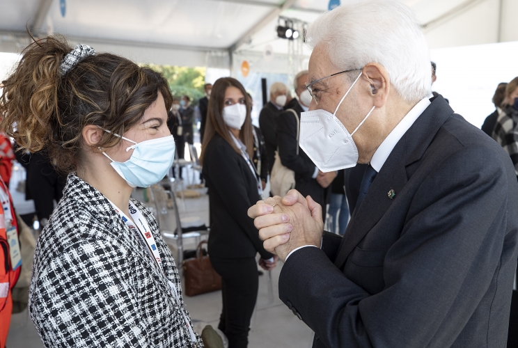 Il Presidente Sergio Mattarella al termine della manifestazione “Siete Presente” saluta il Sottosegretario di Stato alla Salute Pierpaolo Sileri